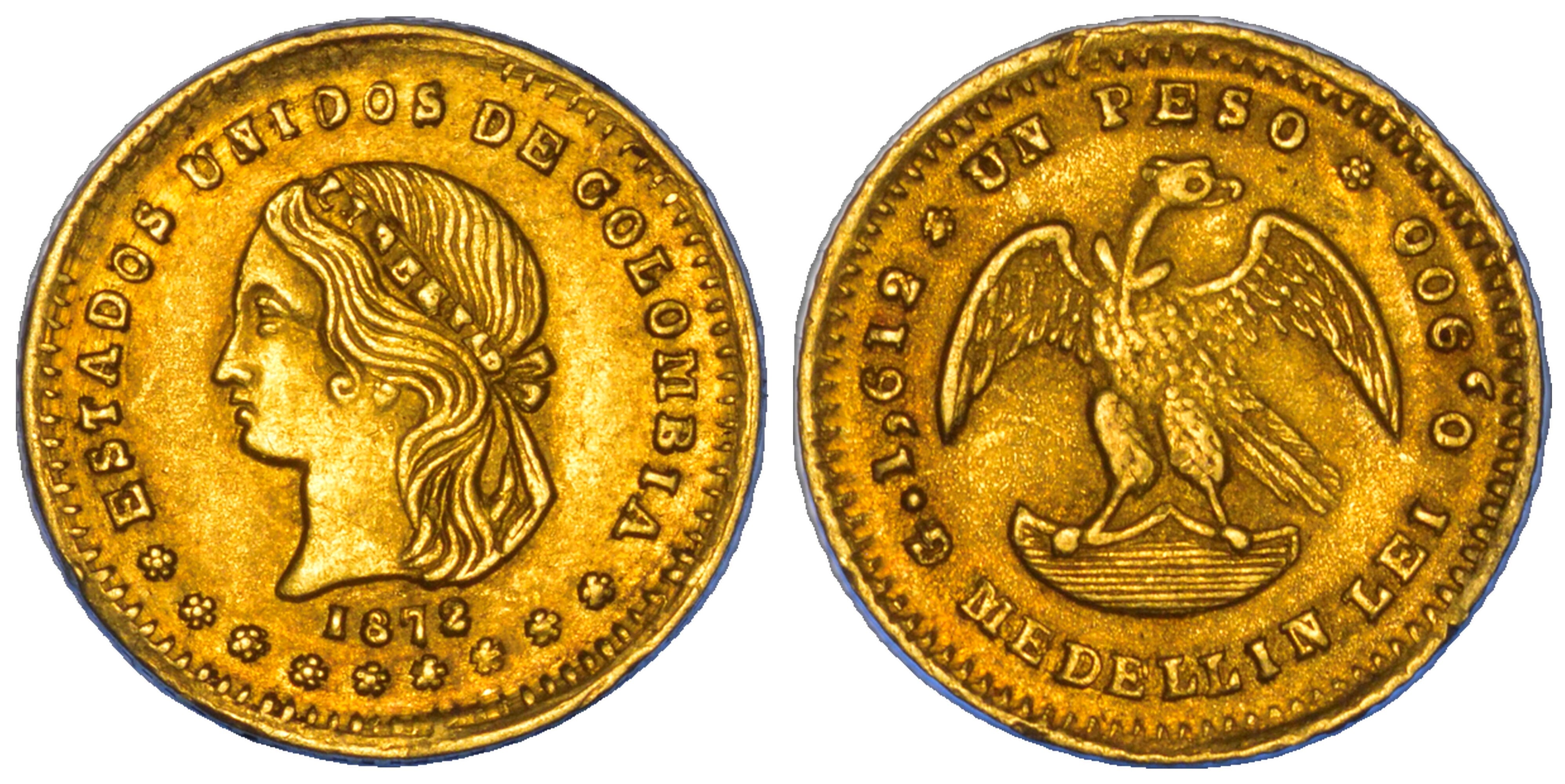 COLOMBIA. ESTADOS UNIDOS DE COLOMBIA, 1862-1886. Peso 1872. Medellin.