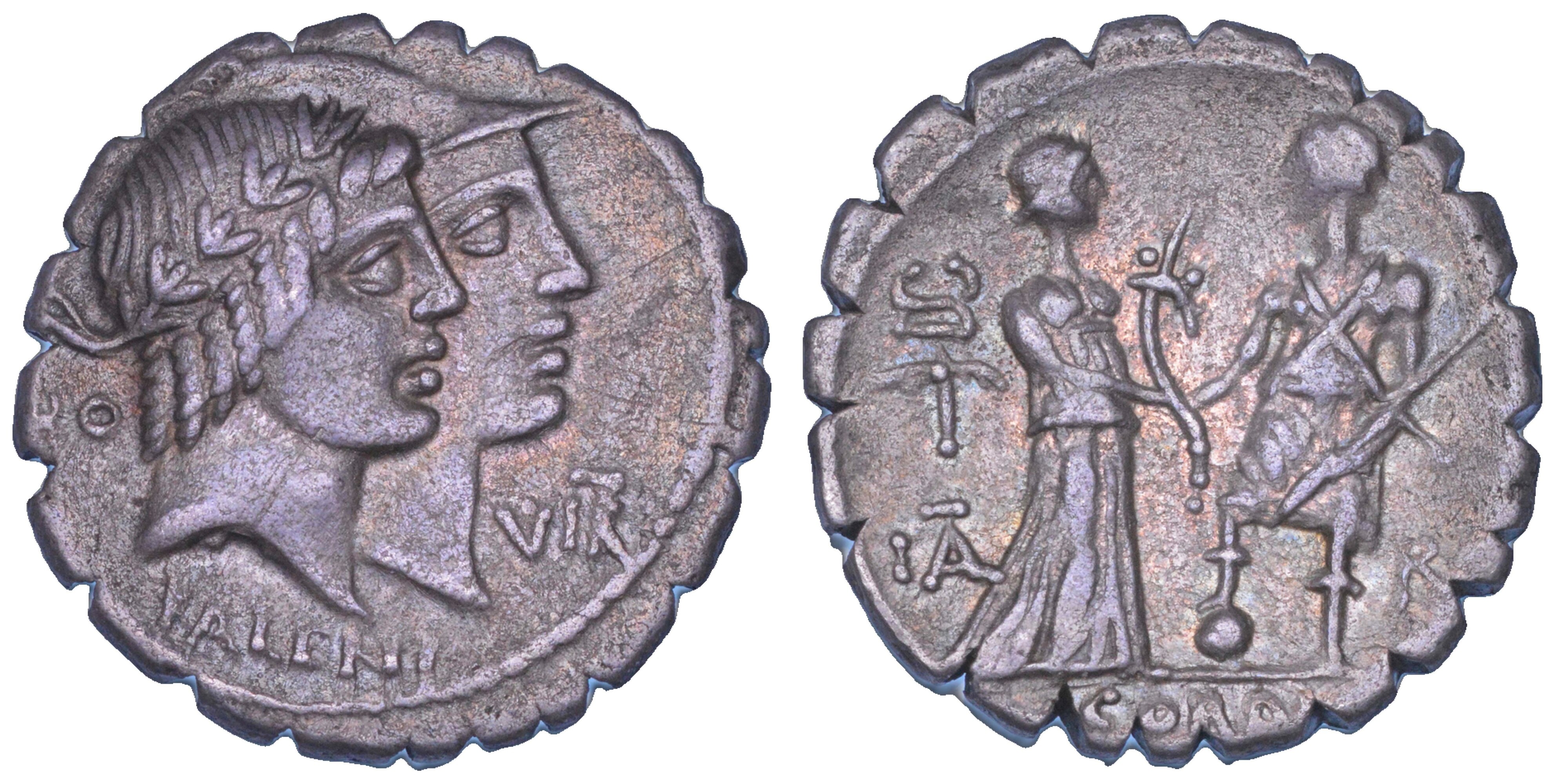 FUFIA. Q. Fufius Calenus and Mucius Cordus, 68 a.C. Denario serrato.