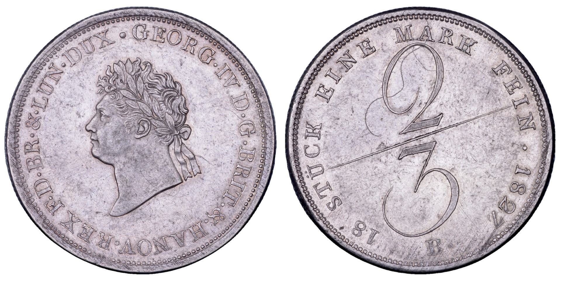 GERMANIA - HANNOVER. GEORGE IV D'INGHILTERRA, 1820-1830. 2/3 Taler 1827.