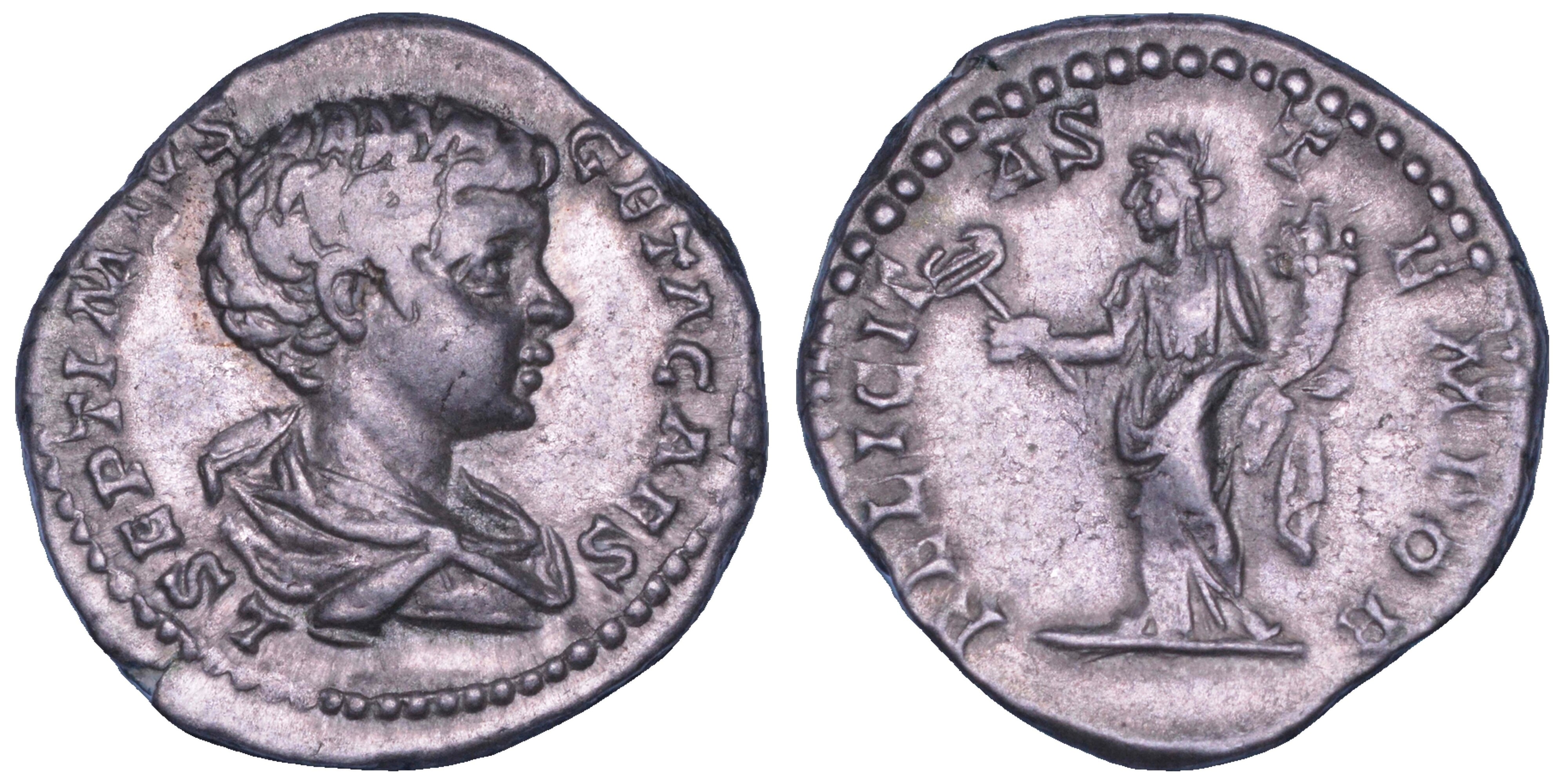 GETA (Cesare), 198-209. Denario, 199-202. Roma.