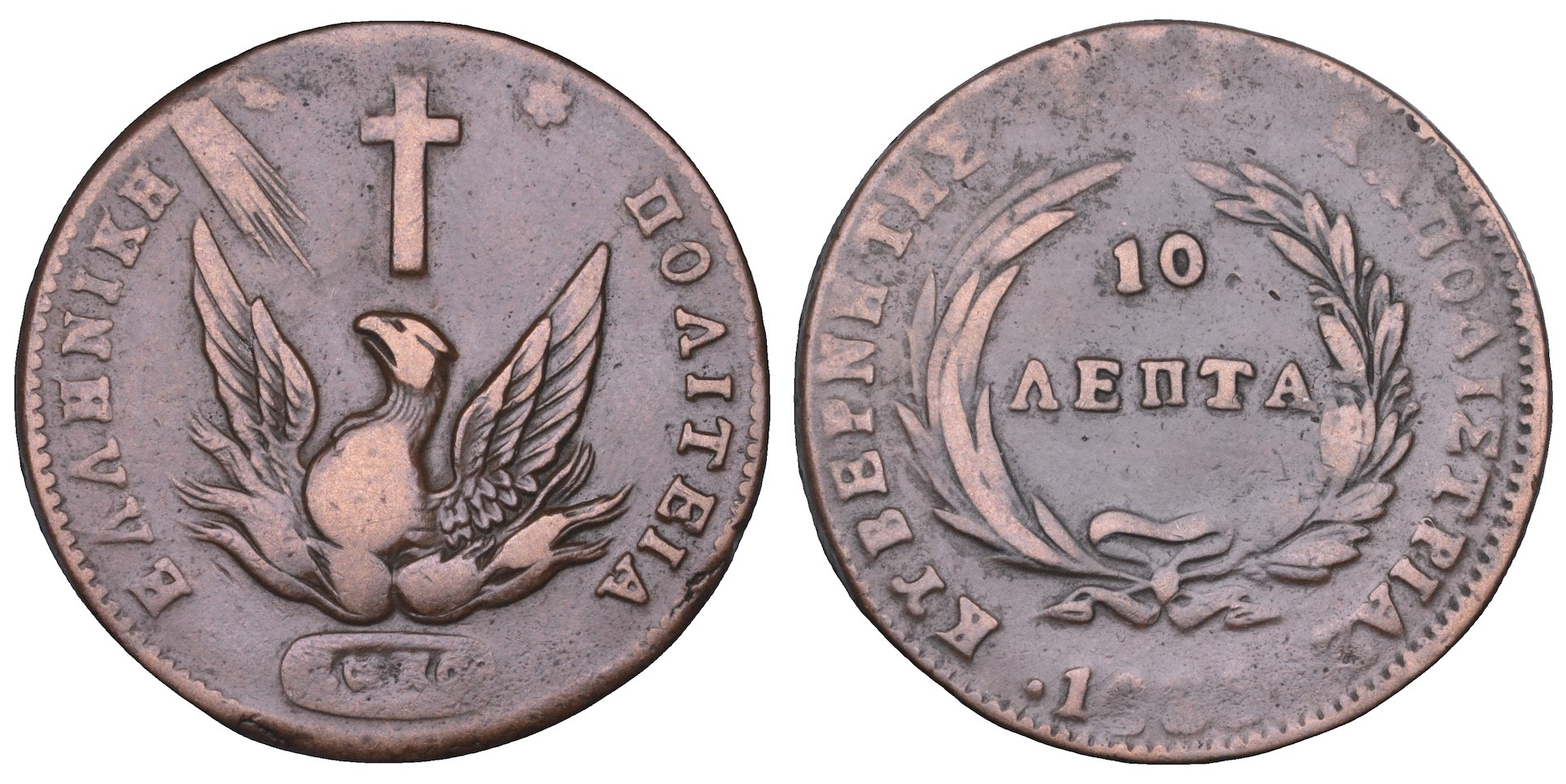 GRECIA. GIOVANNI CAPODISTRIA (governatore), 1828-1831. 10 Lepta 1831 (data poco leggibile).