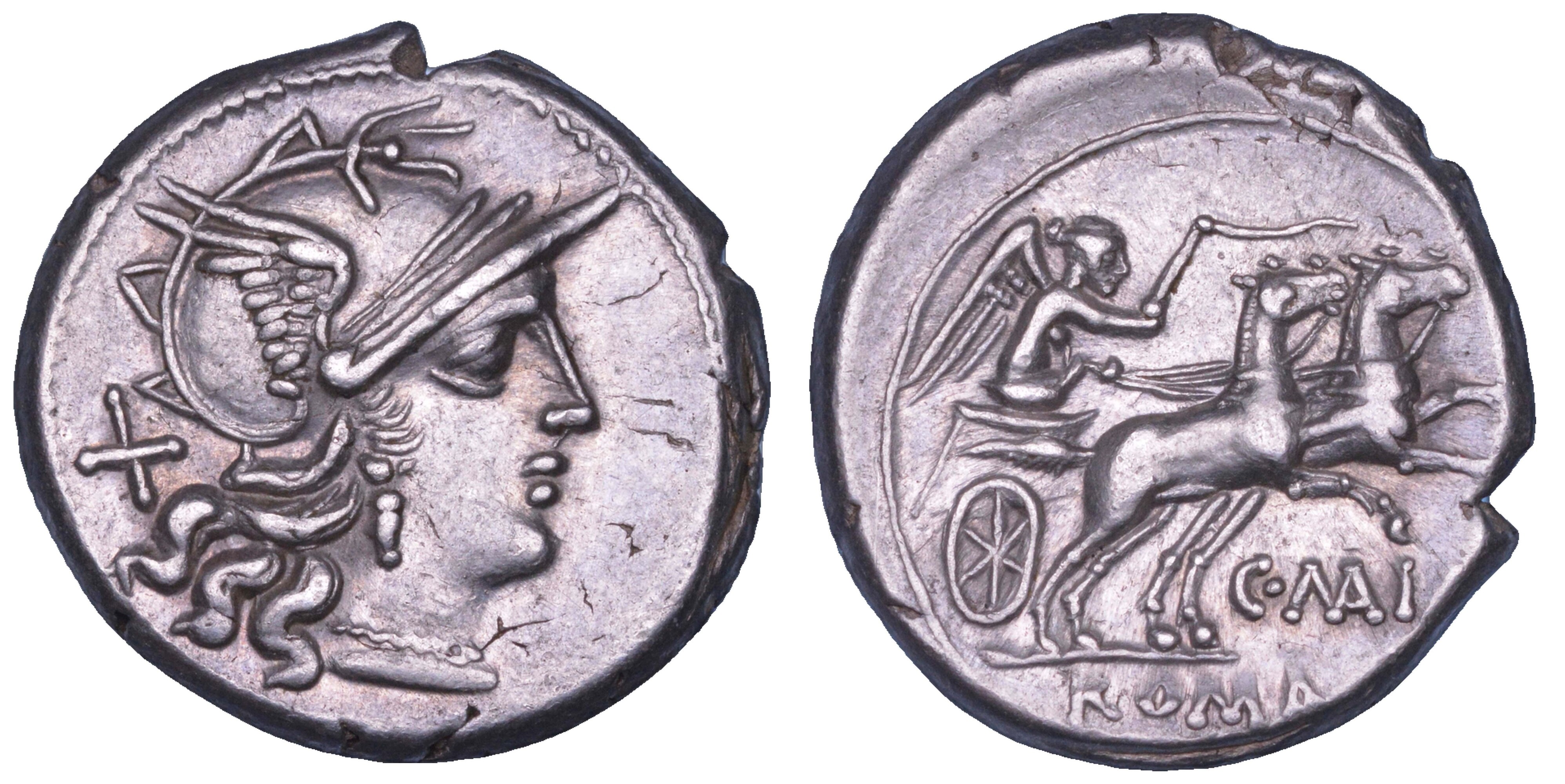 MAIANIA. C. Maianius, 153 a.C. Denario.