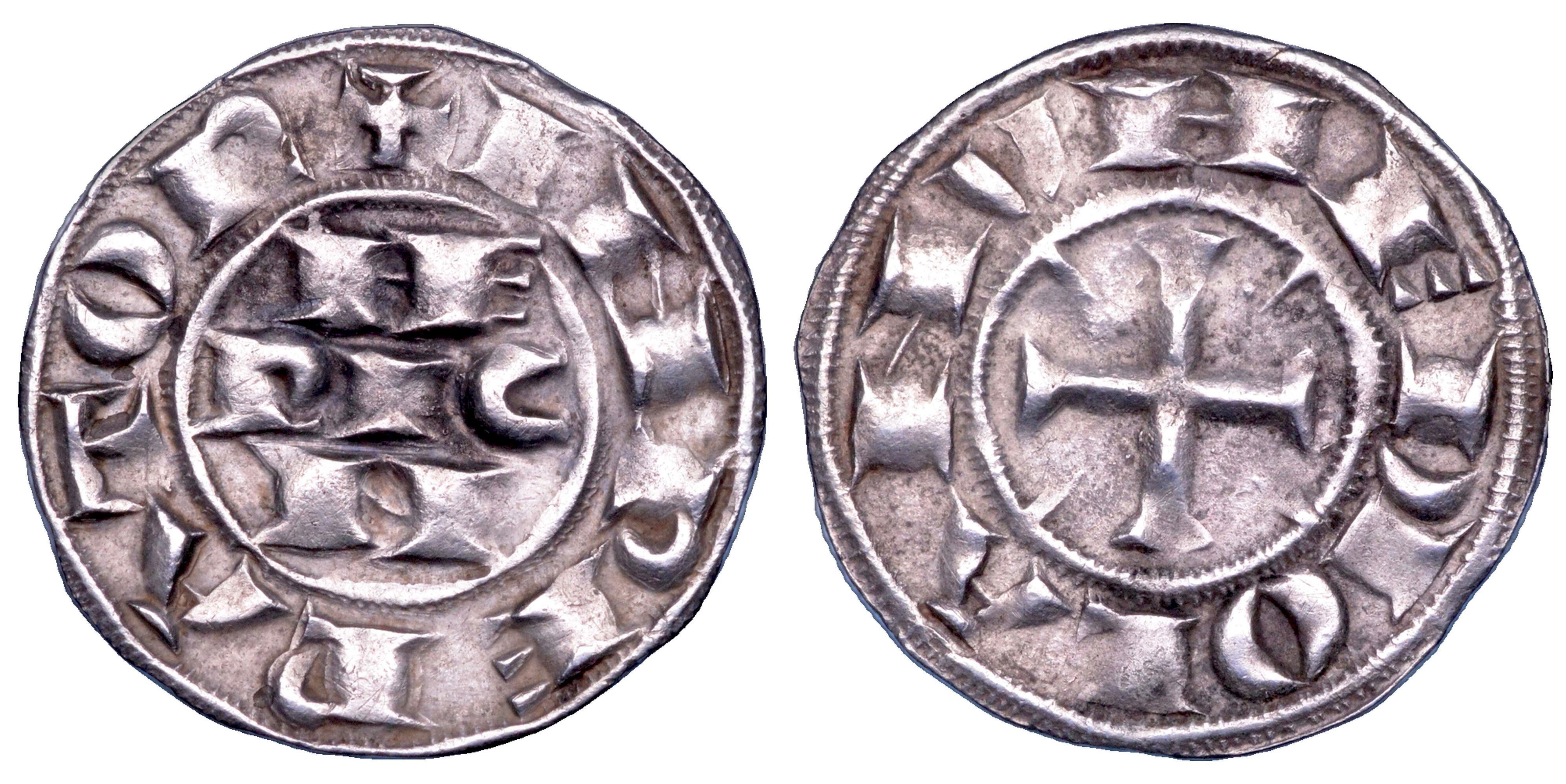 + IMPERATOR Al centro, HE RIC N Scritto in tre righe. R/ MEDIOLANV Nel campo, croce accantonata da quattro cunei. Crippa 12/A. MEC, tipo 559 var. MIR 57/2. Rarissimo. g. 1,36. Diam. mm. 19,50. Arg. MB/BB