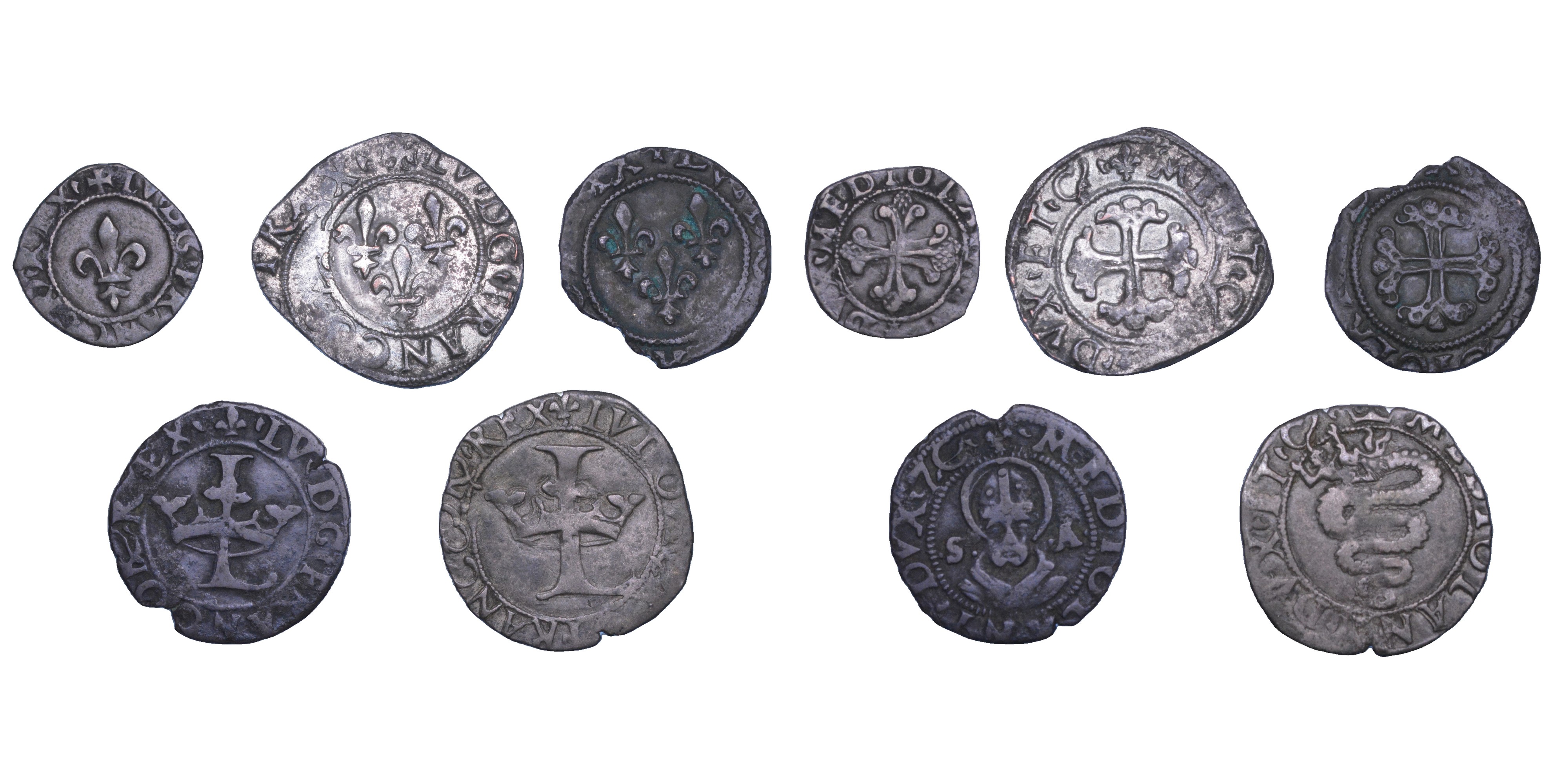 LUDOVICO XII D'ORLEANS, 1500-1512. Sesino. Crippa 15. Mist. MB - LUDOVICO XII D'ORLEANS, 1500-1512. Trillina. Crippa 16. Mist. MB - LUDOVICO XII D'ORLEANS, 1500-1512. Trillina. Crippa 17. Mist. BB - LUDOVICO XII D'ORLEANS, 1500-1512. Trillina. Crippa 18. Rara. Mist. MB/BB - LUDOVICO XII D'ORLEANS, 1500-1512. Denaro. Crippa 19. Rara. Mist. q.BB