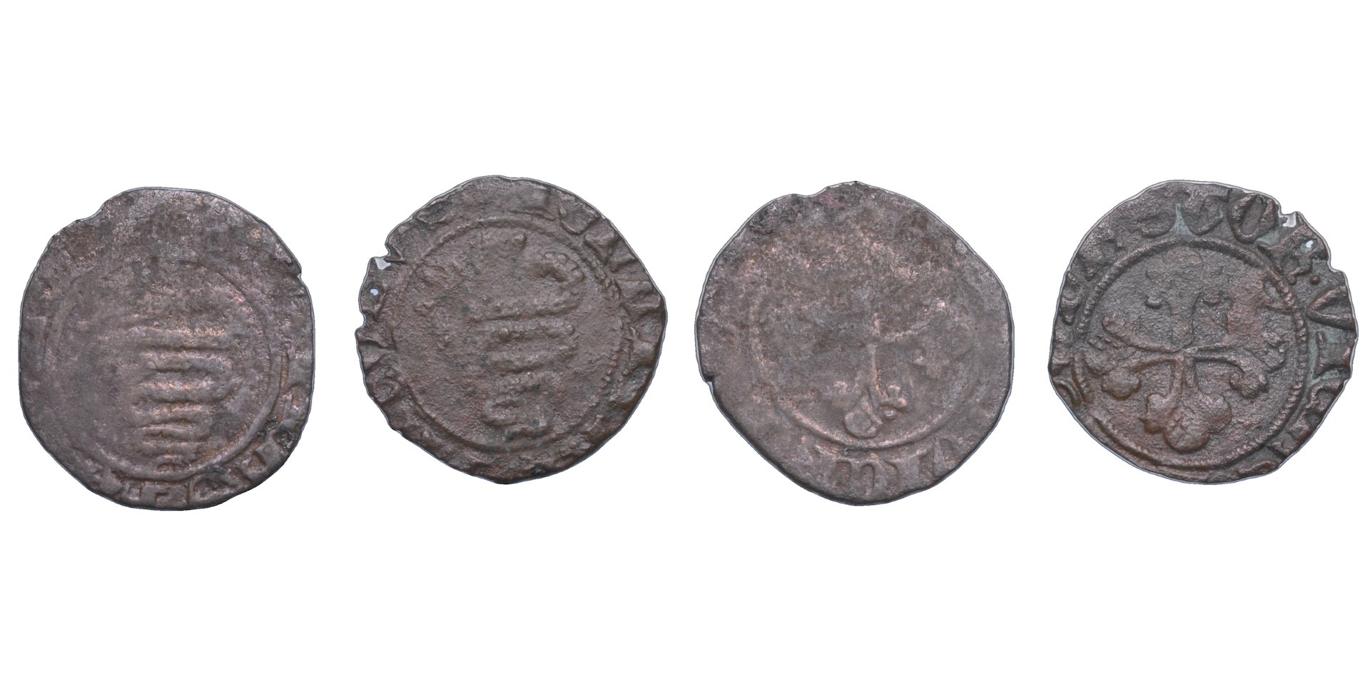 GIAN CARLO ed ESTORE VISCONTI, 1412. Bissolo. (rosetta) IOHANES KAROLVS Biscia viscontea coronata. R/ (rosetta) HESTOR VICECOMES Croce gigliata. Crippa 3. MEC 664. MIR 149/1. Raro. g. 0,31. Diam. mm. 13,27. Arg. MB, più un secondo esemplare B