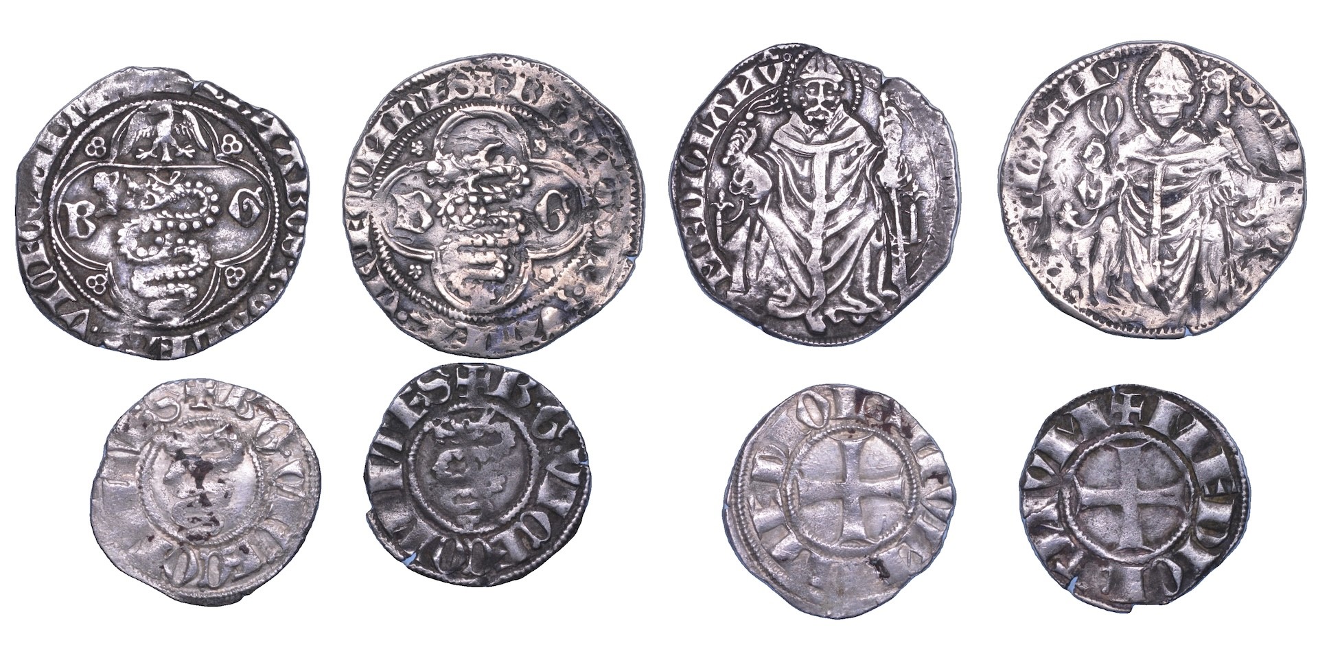 BERNABO' E GALEAZZO II VISCONTI, 1354-1378. Grosso. Crippa 2. Arg. MB - BERNABO' E GALEAZZO II VISCONTI, 1354-1378. Pegione. Crippa 2. Arg. MB - BERNABO' E GALEAZZO II VISCONTI, 1354-1378. Sesino. Crippa. Arg. (2 esemplari) MB/BB