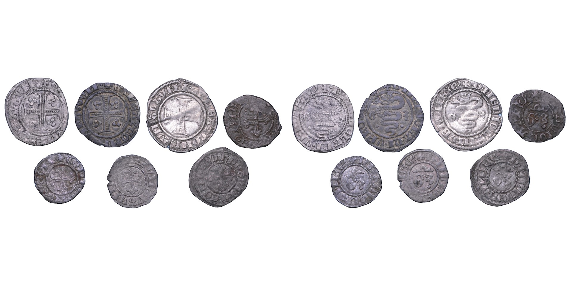 GIAN GALEAZZO VISCONTI Secondo periodo, Duca di Milano, 1395-1402. Sesino. Crippa 11 (1 es.) -12 (2 es.). Arg. da MB a BB - GIAN GALEAZZO VISCONTI Secondo periodo, Duca di Milano, 1395-1402. Denaro. Crippa 14. Mist (4 es.). BB - MB e MB/BB