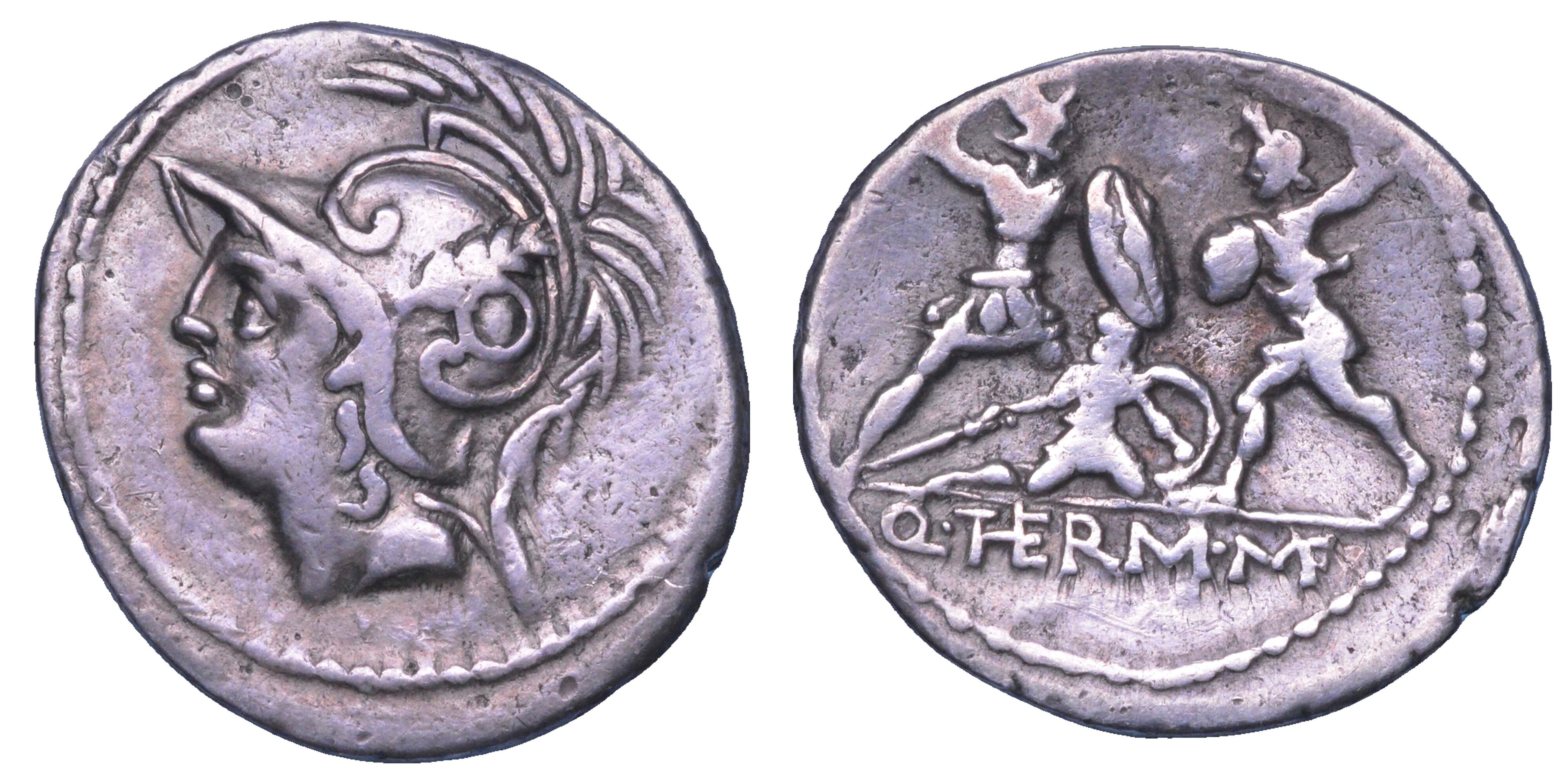 MINUCIA. Q. Minucius M.f. Thermus, 103 a.C. Denario.
