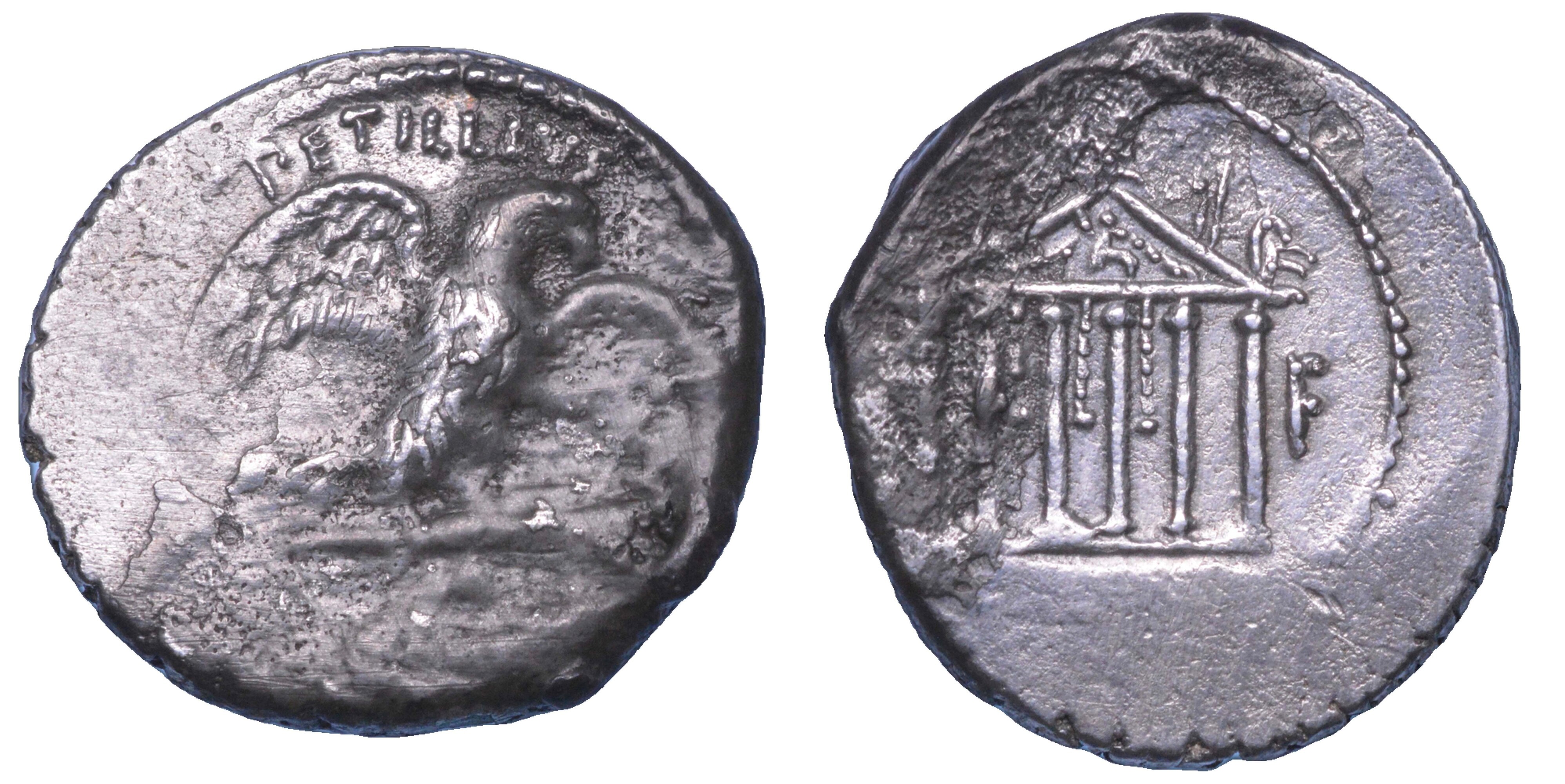 PETILLIA. Petillius Capitolinus, 43 a.C. Denario.