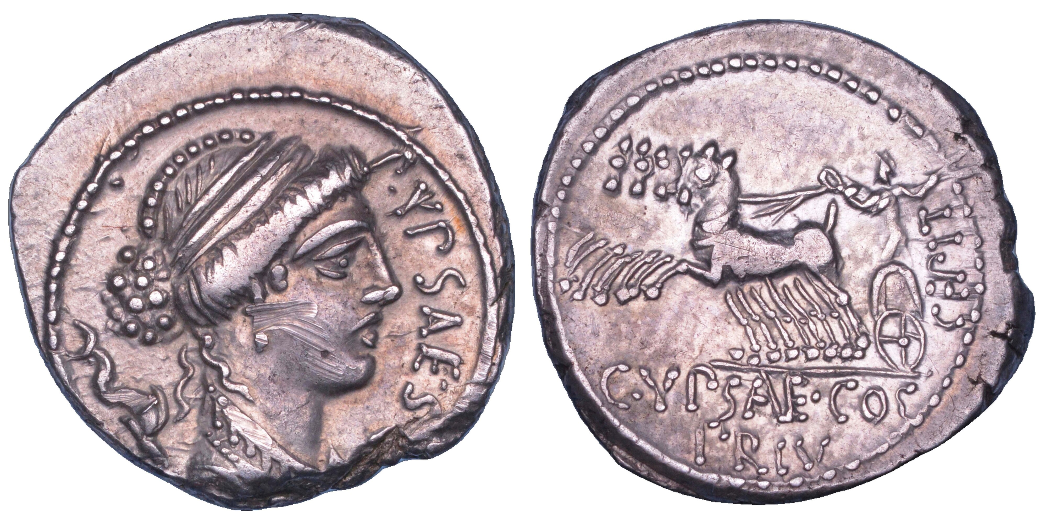PLAUTIA. P. Plautius Hypsaeus, 60 a.C. Denario.