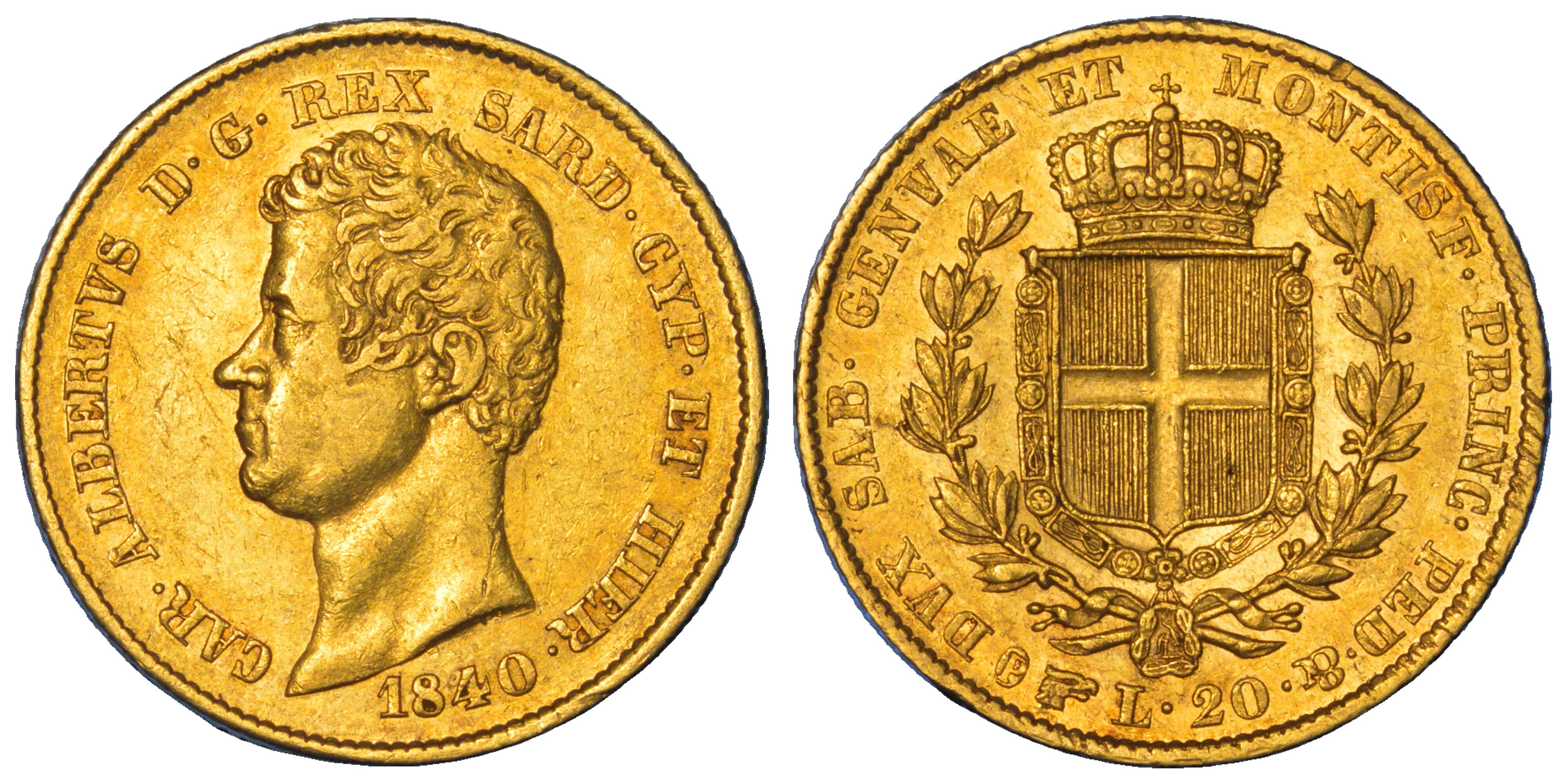 REGNO DI SARDEGNA. CARLO ALBERTO DI SAVOIA, 1831-1849. 20 Lire 1840. Torino.