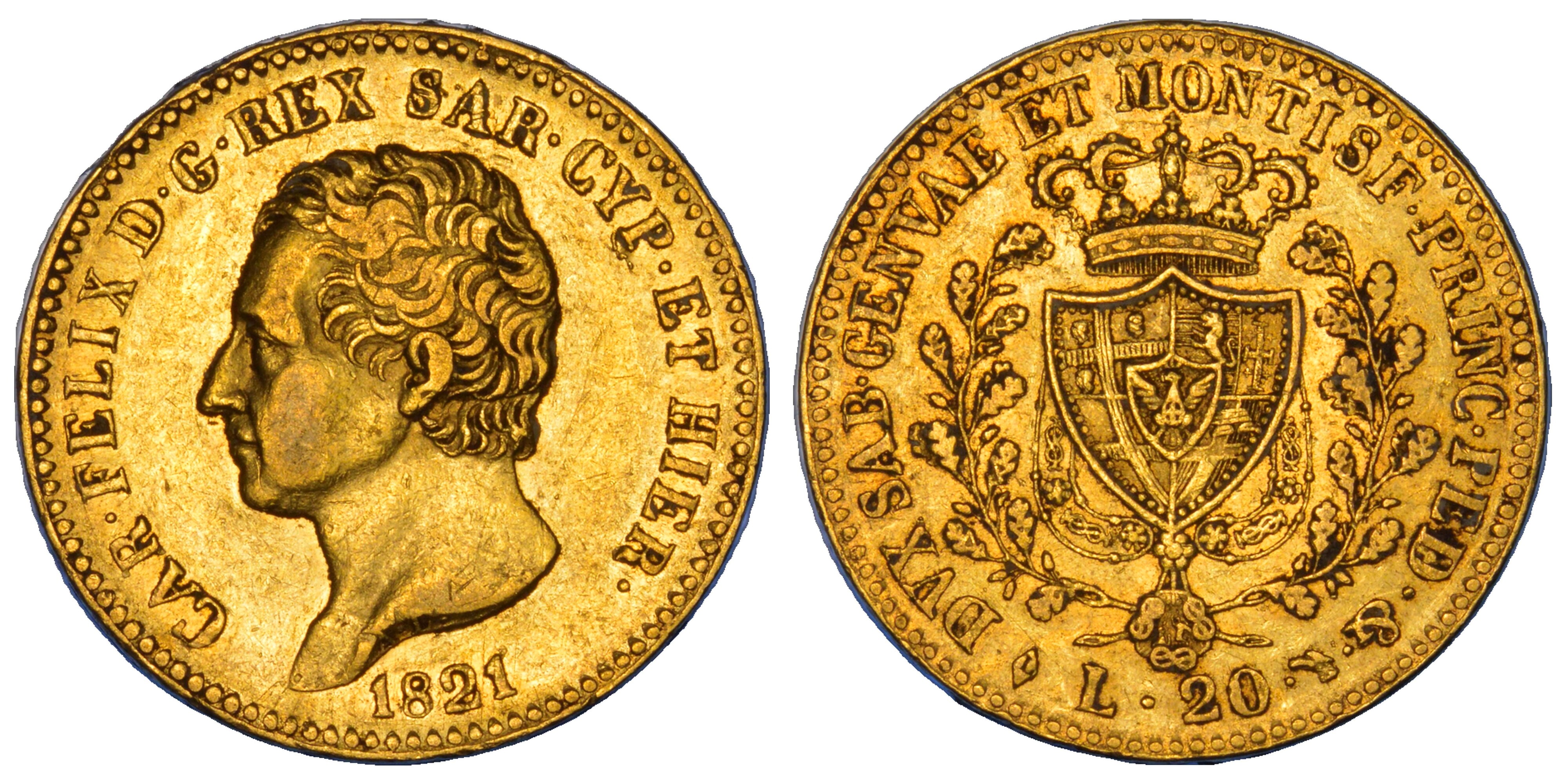 REGNO DI SARDEGNA. CARLO FELICE DI SAVOIA, 1821-1831. 20 Lire 1821. Torino.