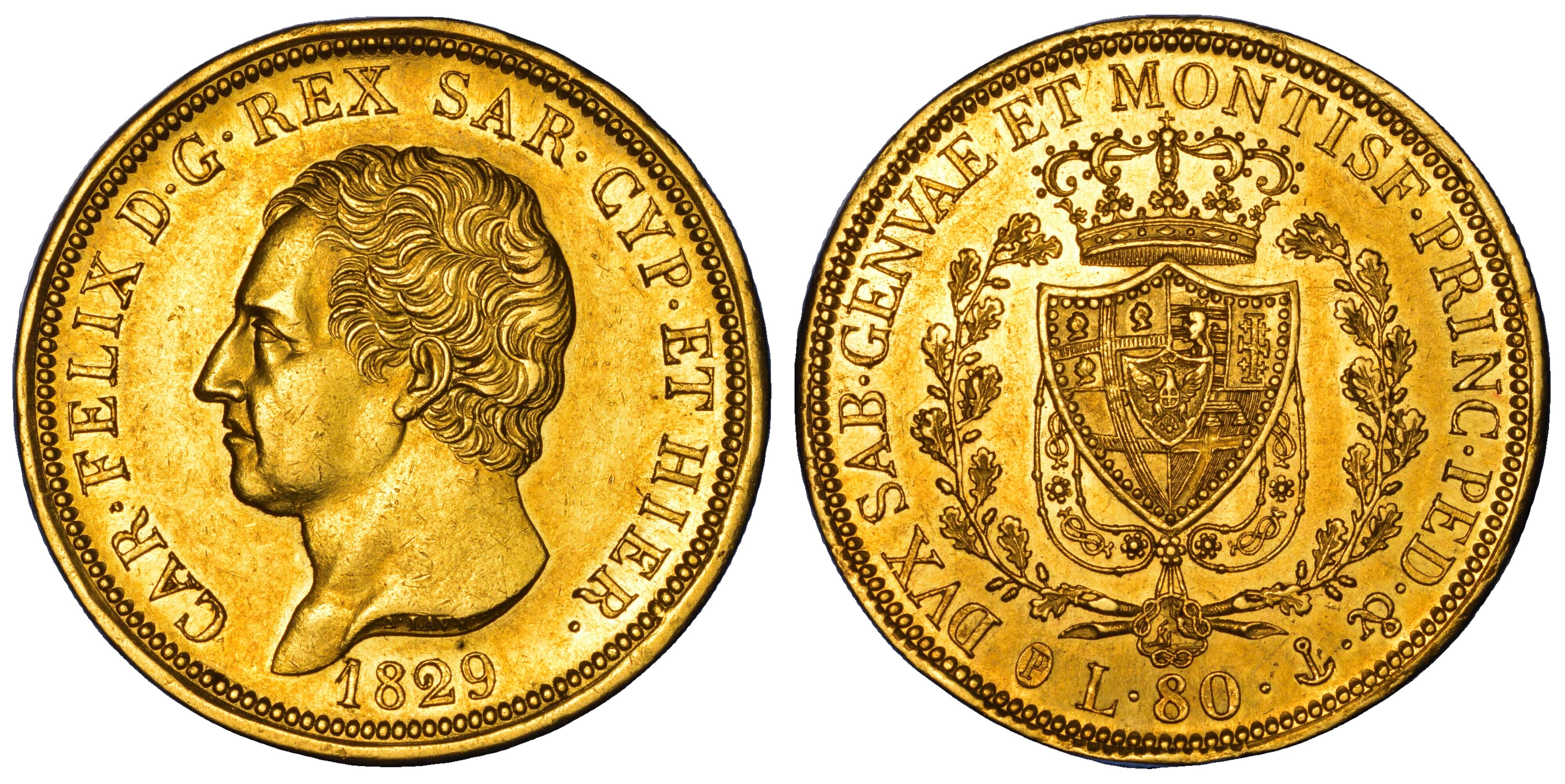 REGNO DI SARDEGNA. CARLO FELICE DI SAVOIA, 1821-1831. 80 Lire 1829. Genova.