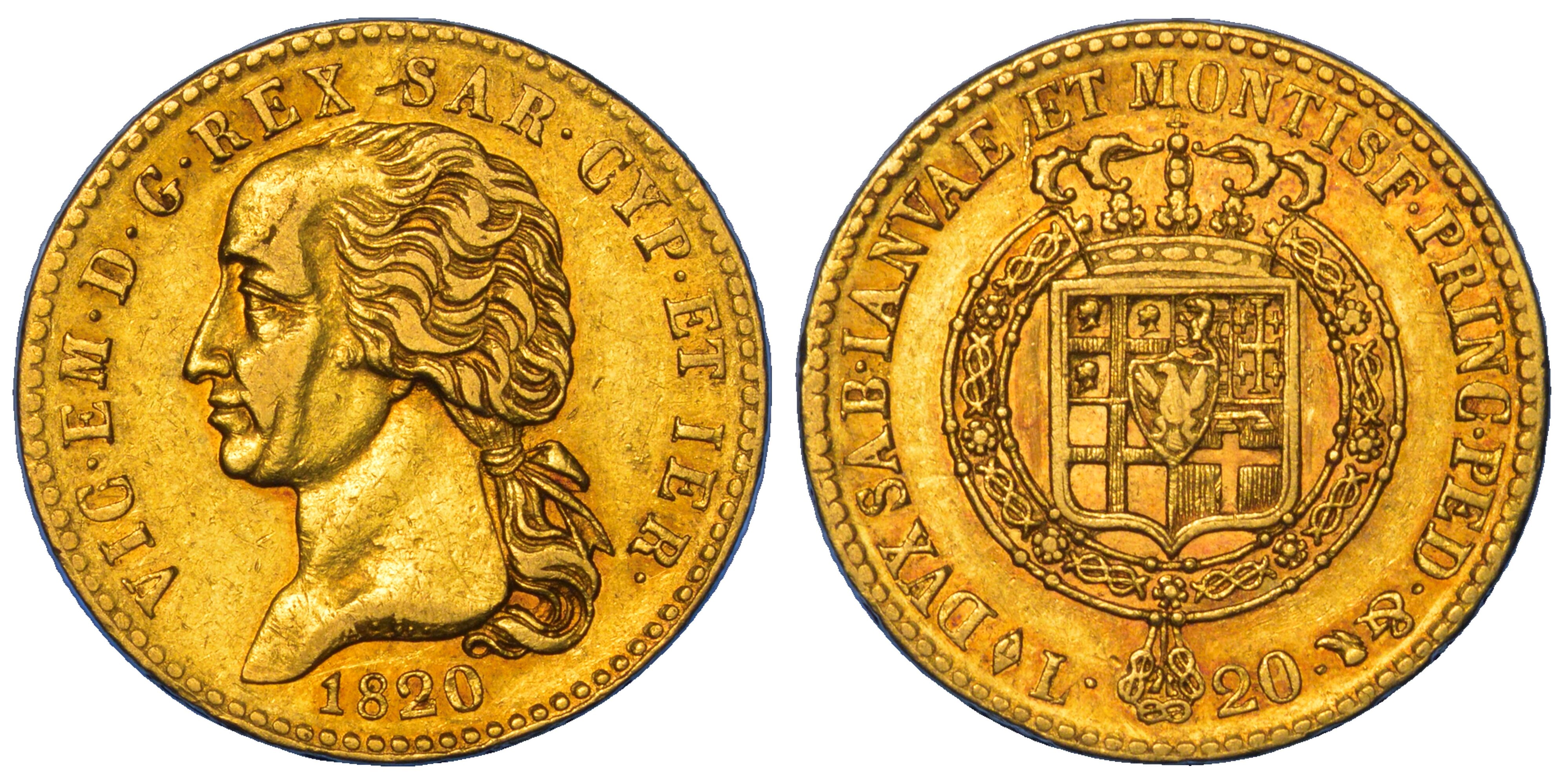 REGNO DI SARDEGNA. VITTORIO EMANUELE I DI SAVOIA, 1802-1821. 20 Lire 1820. Torino.