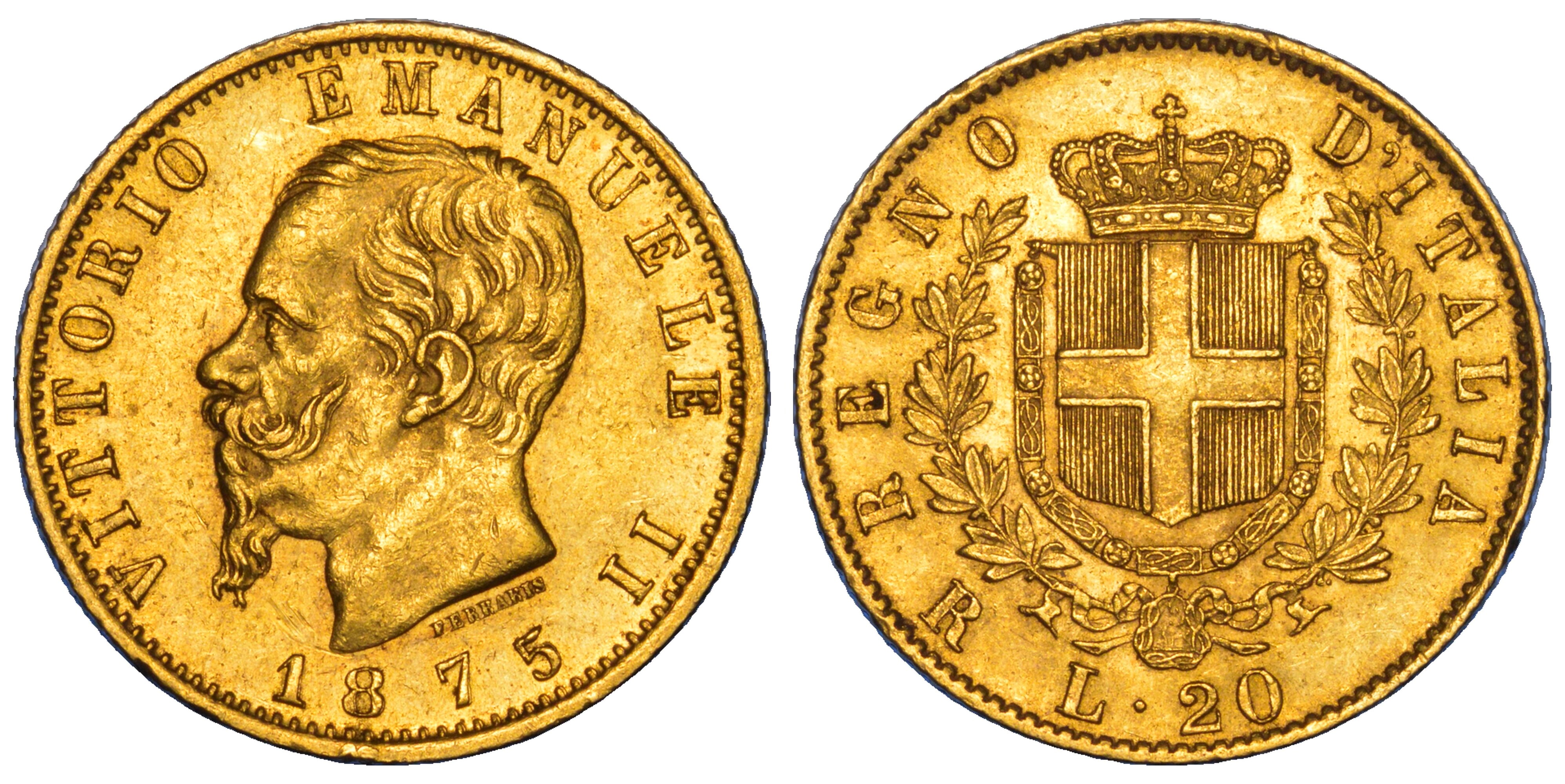 REGNO D'ITALIA. VITTORIO EMANUELE II DI SAVOIA, 1861-1878. 20 Lire 1875. Roma.