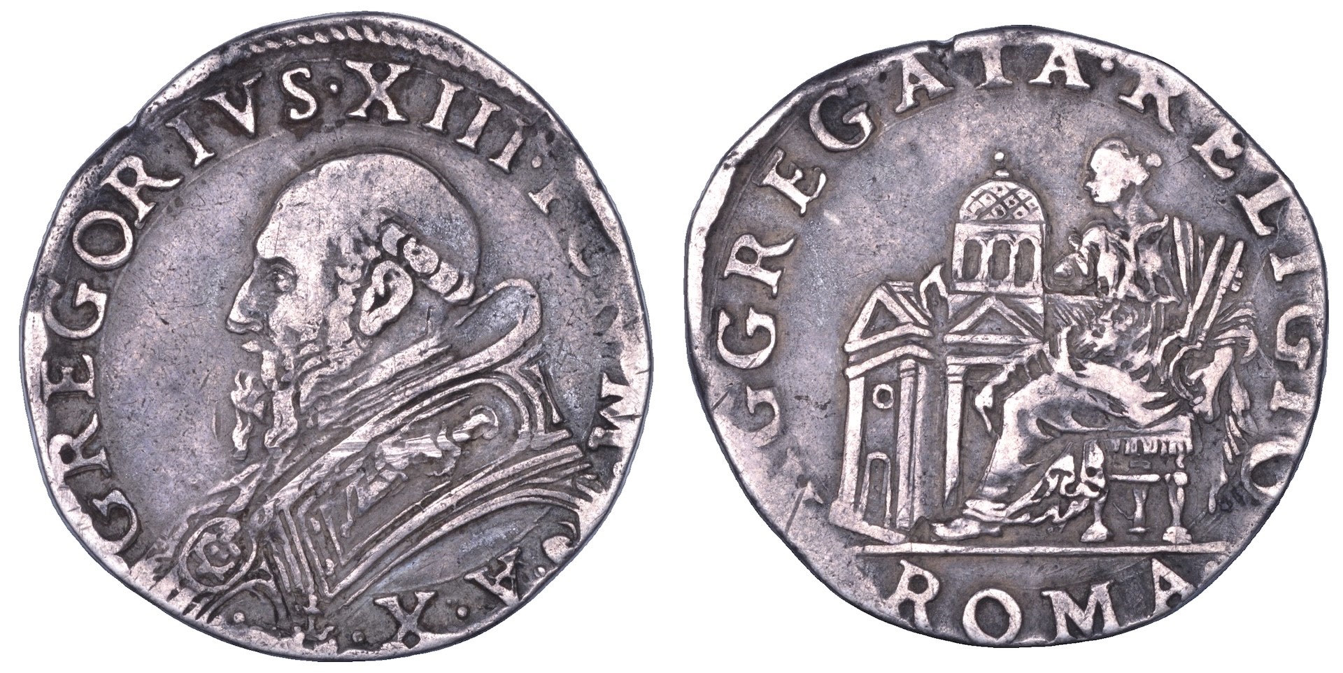STATO PONTIFICIO. GREGORIO XIII, 1572-1585. Testone A. X.