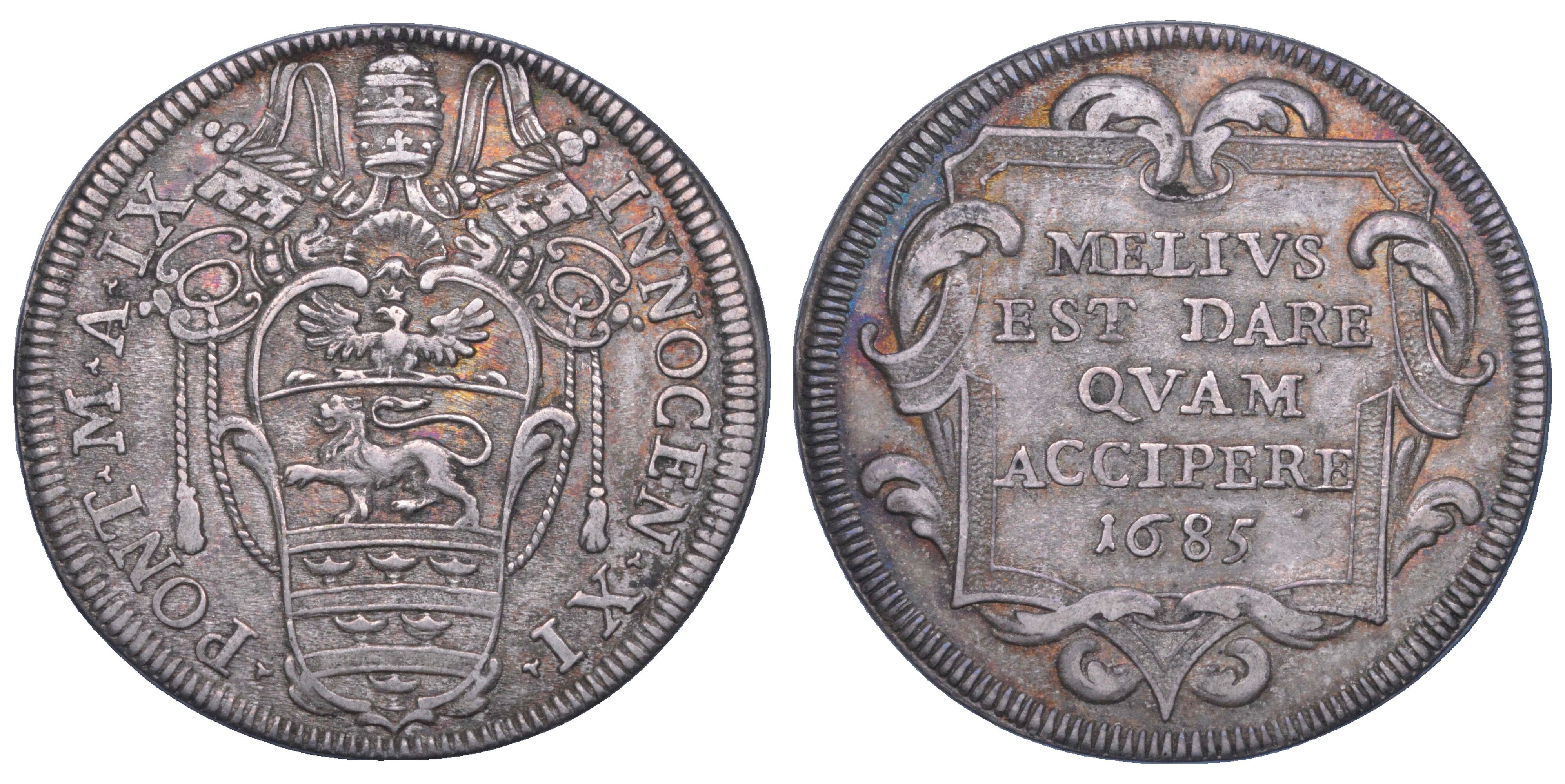 STATO PONTIFICIO. INNOCENZO XI, 1676-1689. Testone 1685. Roma.