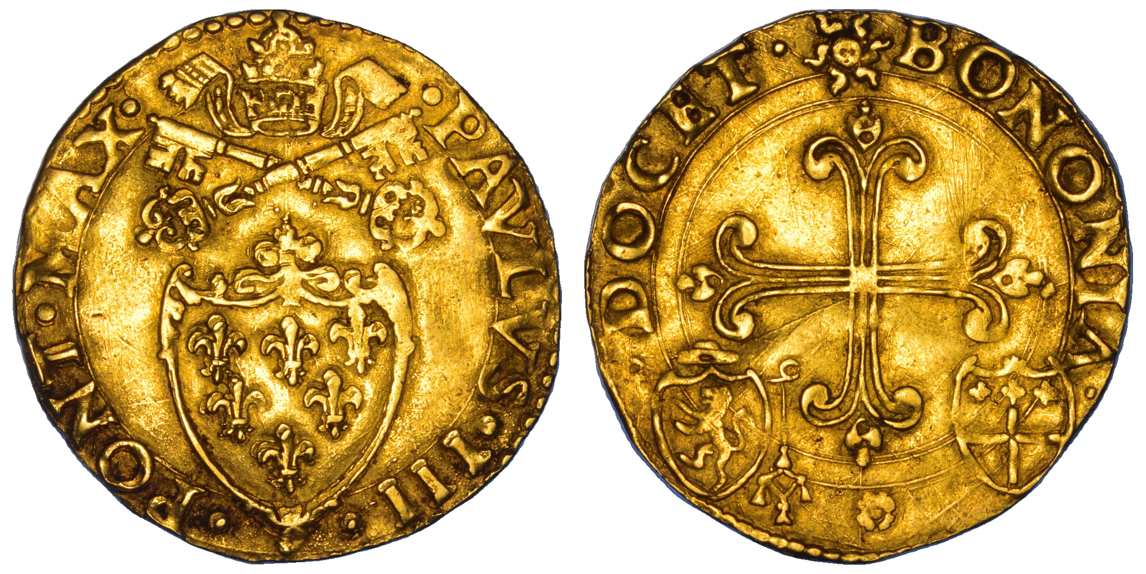 STATO PONTIFICIO. PAOLO III, 1534-1549. Scudo d'oro del sole. Bologna.