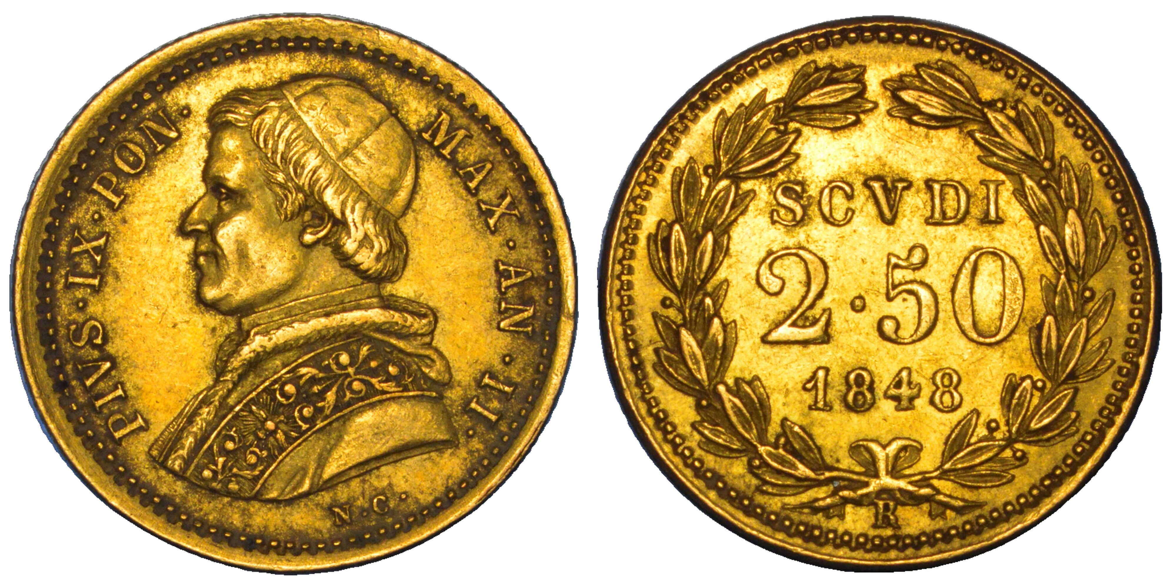 STATO PONTIFICIO. PIO IX, 1846-1878. 2,5 Scudi 1848/A. II. Roma.