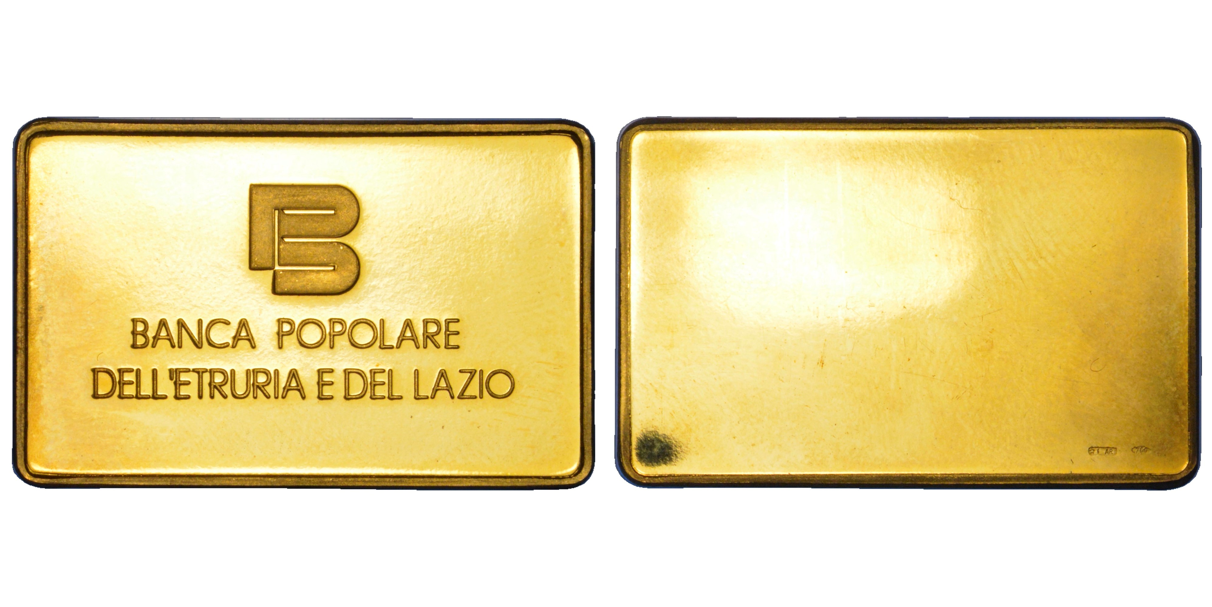 VARIE - REPUBBLICA ITALIANA. BANCA POPOLARE DELL’ETRURIA E DEL LAZIO. Placchetta in oro.