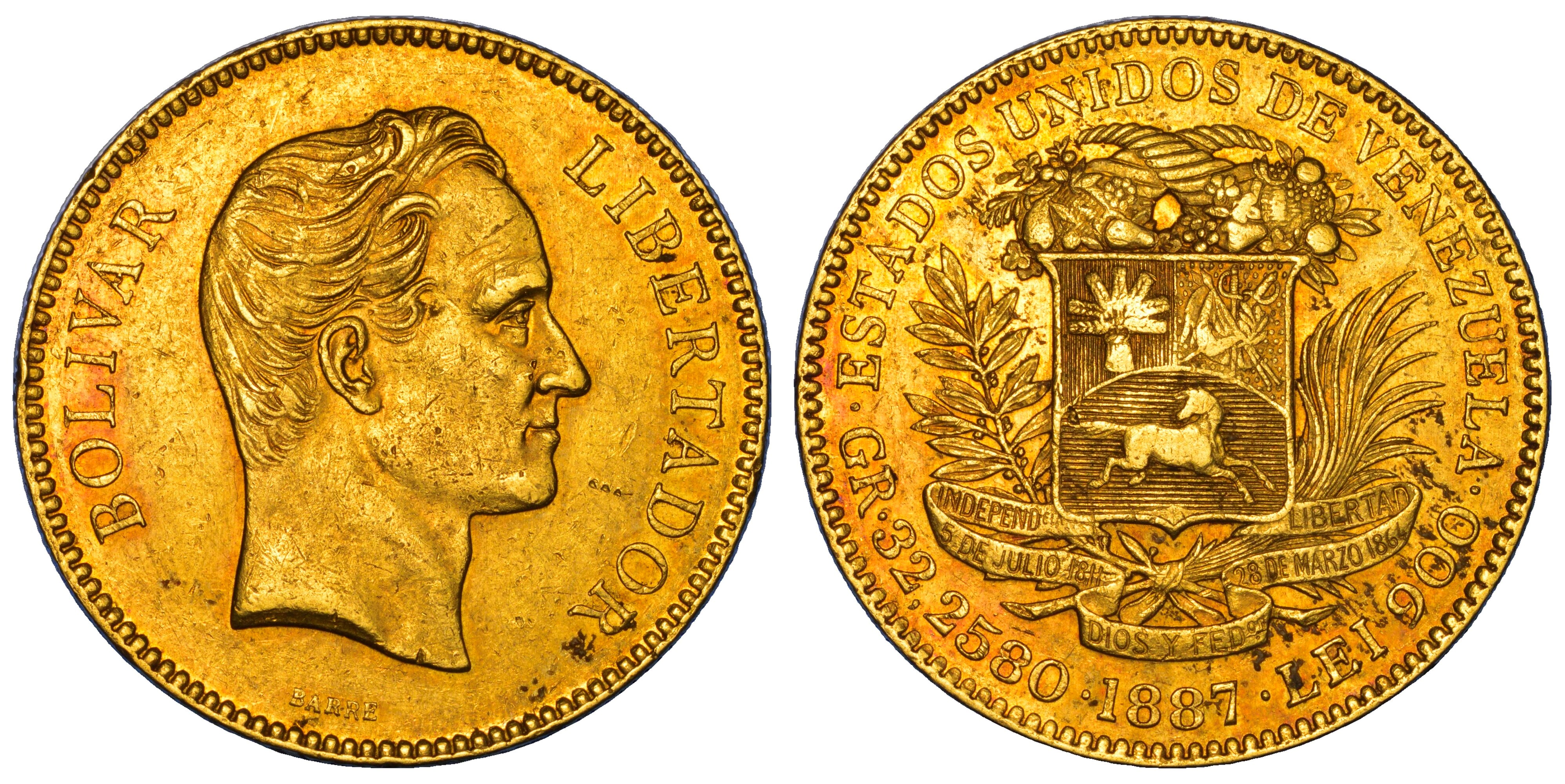 VENEZUELA. REPUBBLICA. 100 Bolivares 1887. Caracas.
