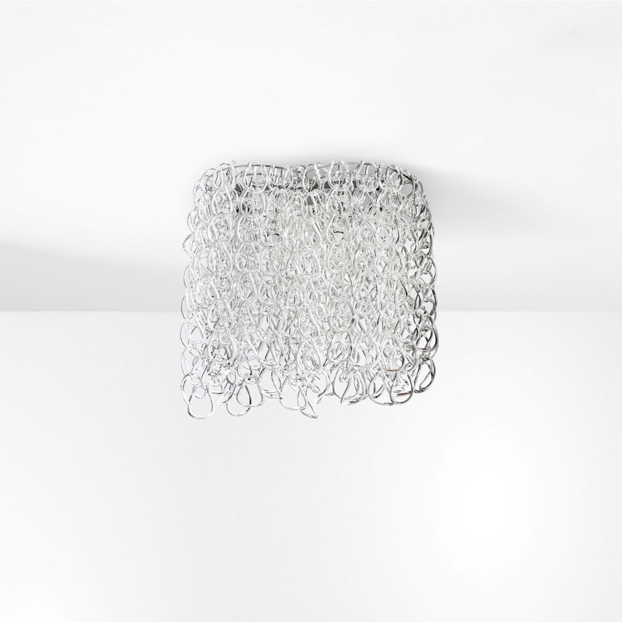 Struttura in metallo ed elementi diffusori in vetro di Murano della serie Sella costituiti da ganci modulari componibili.