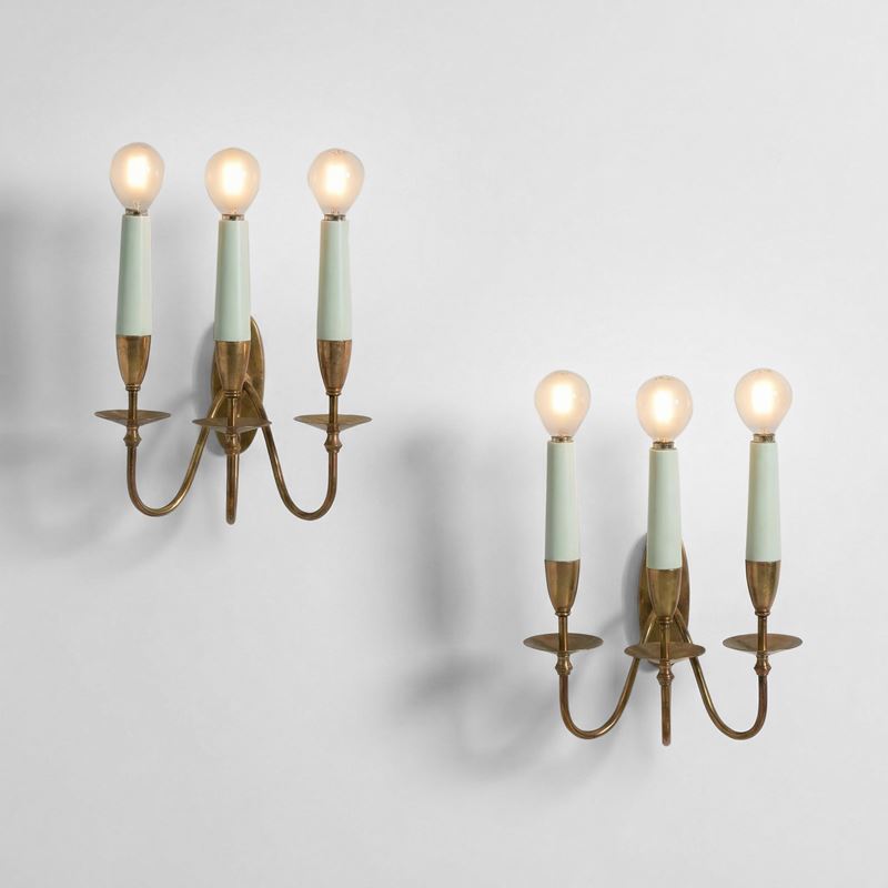 Struttura in ottone e legno laccato.
