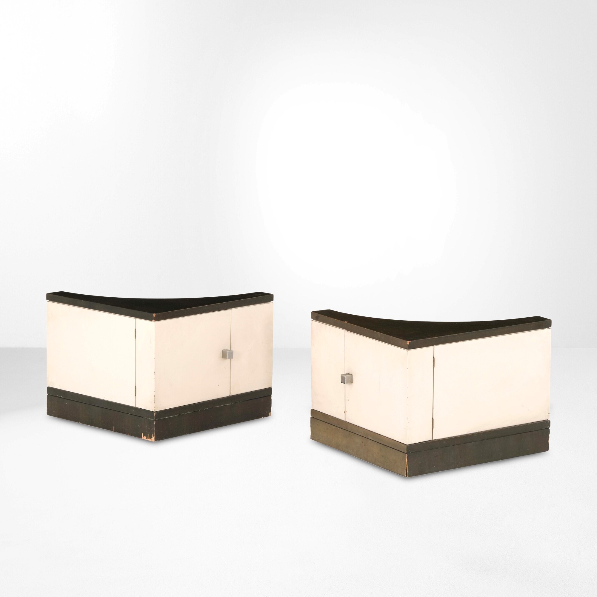 Struttura in legno laccato ed ebanizzato. Pomelli in metallo.