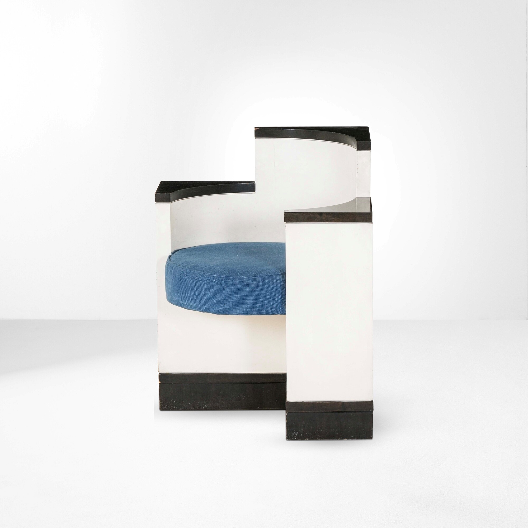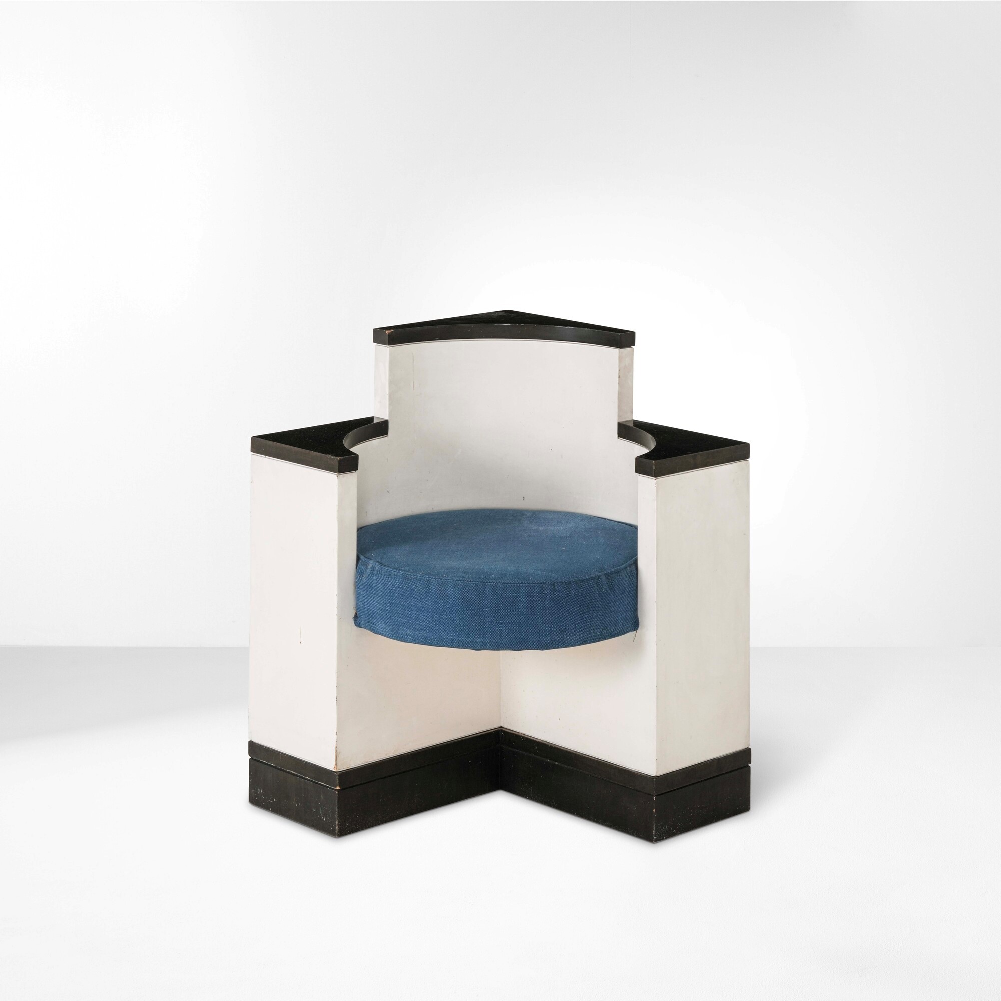 Struttura in legno laccato ed ebanizzato con rivestimento in tessuto.