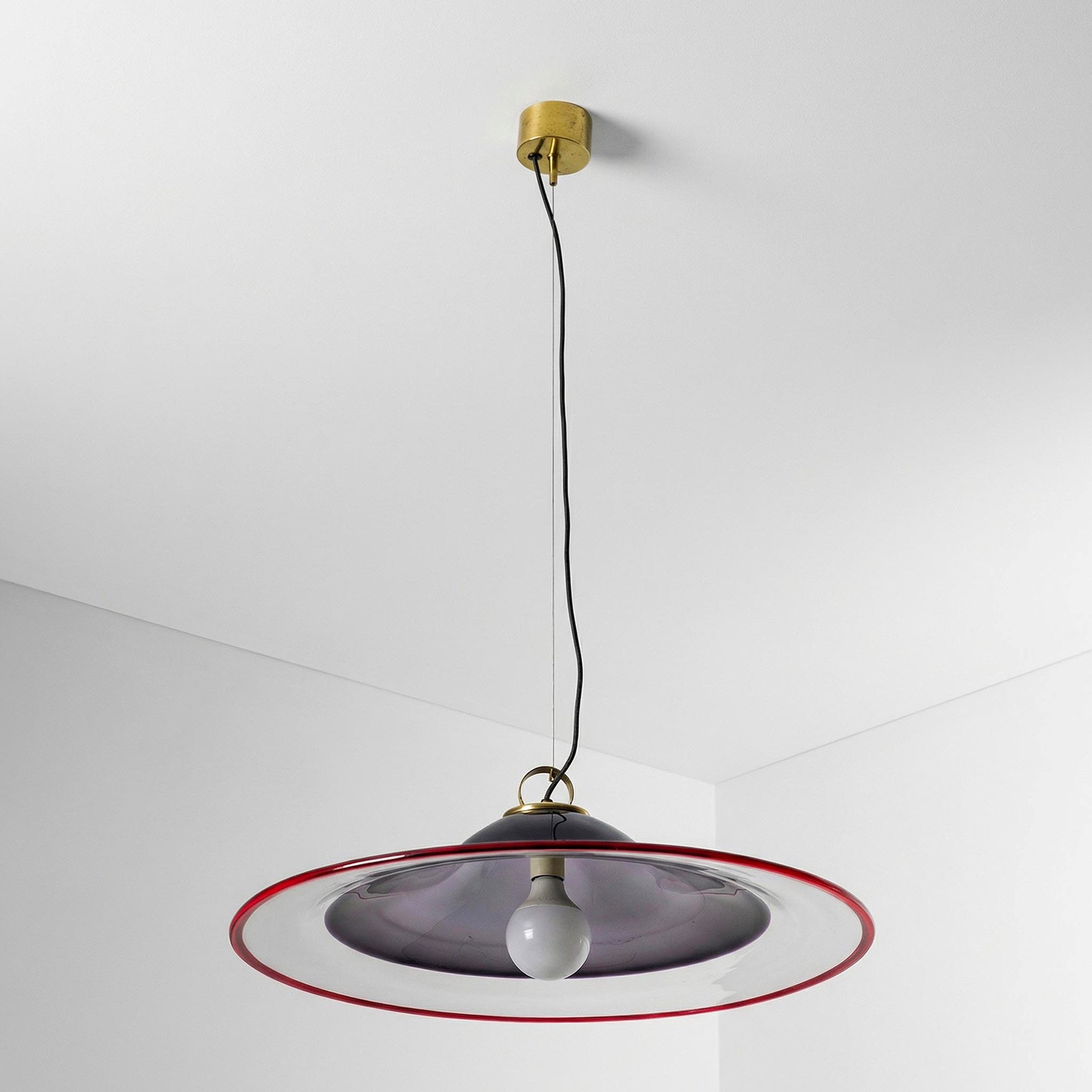 Struttura in ottone e diffusore in vetro di Murano colorato.