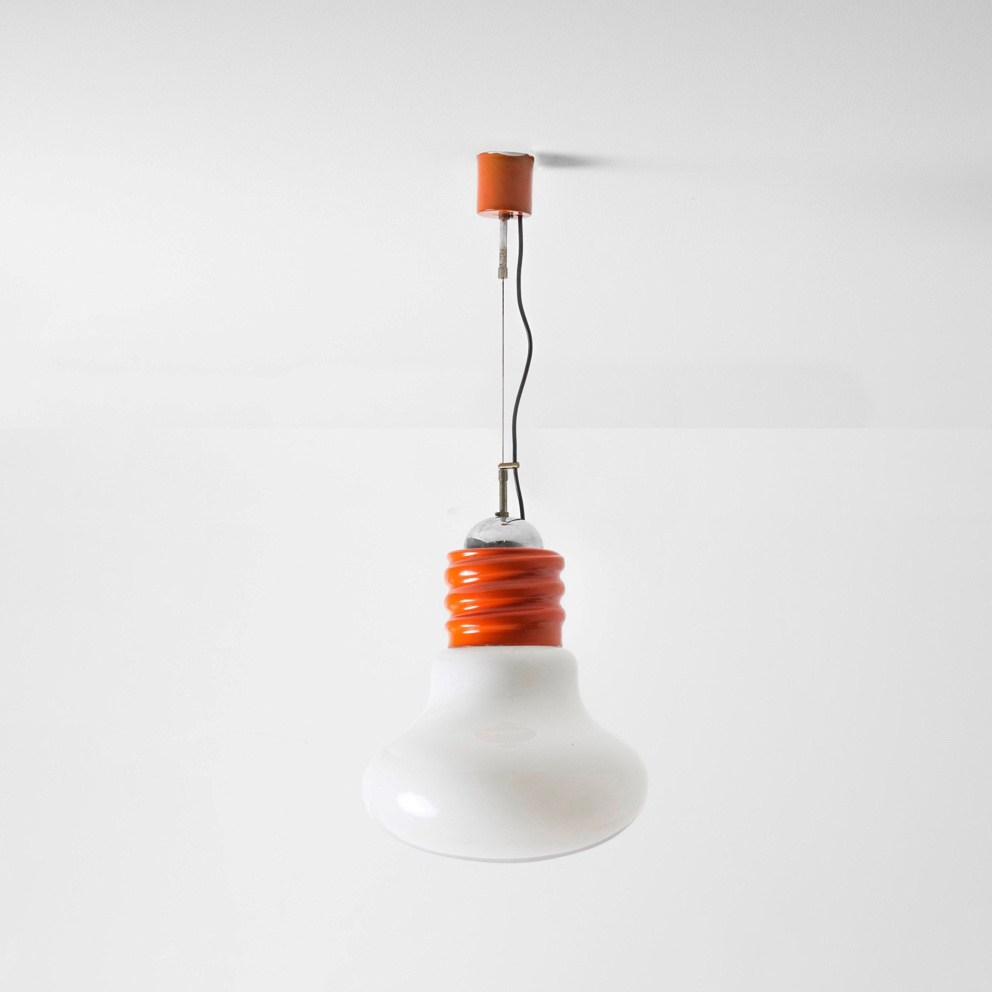 Struttura in metallo cromato e laccato, diffusore in vetro opalino.
