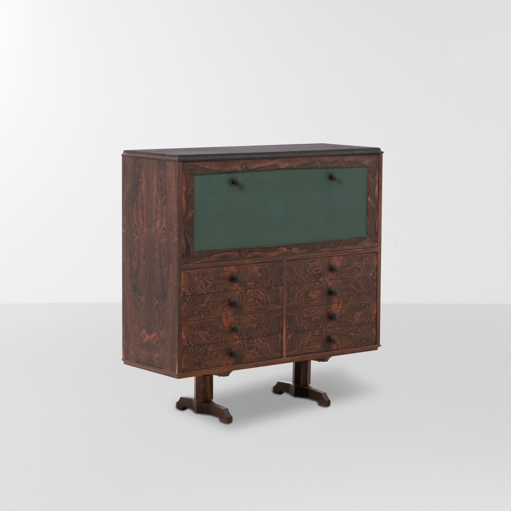 Struttura in legno, legno laminato e legno laccato. Anta rivestita di skai.