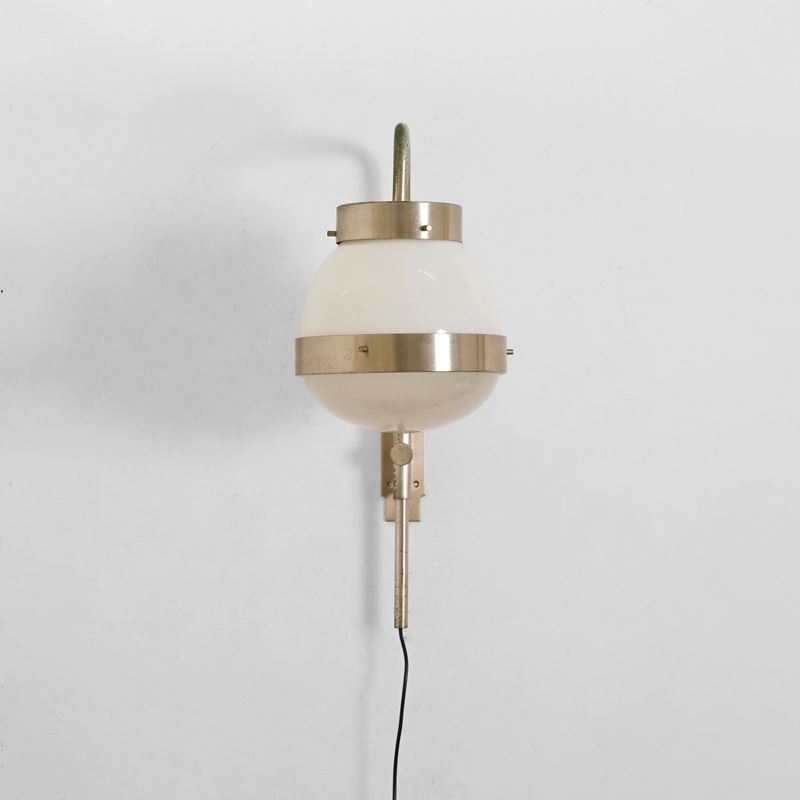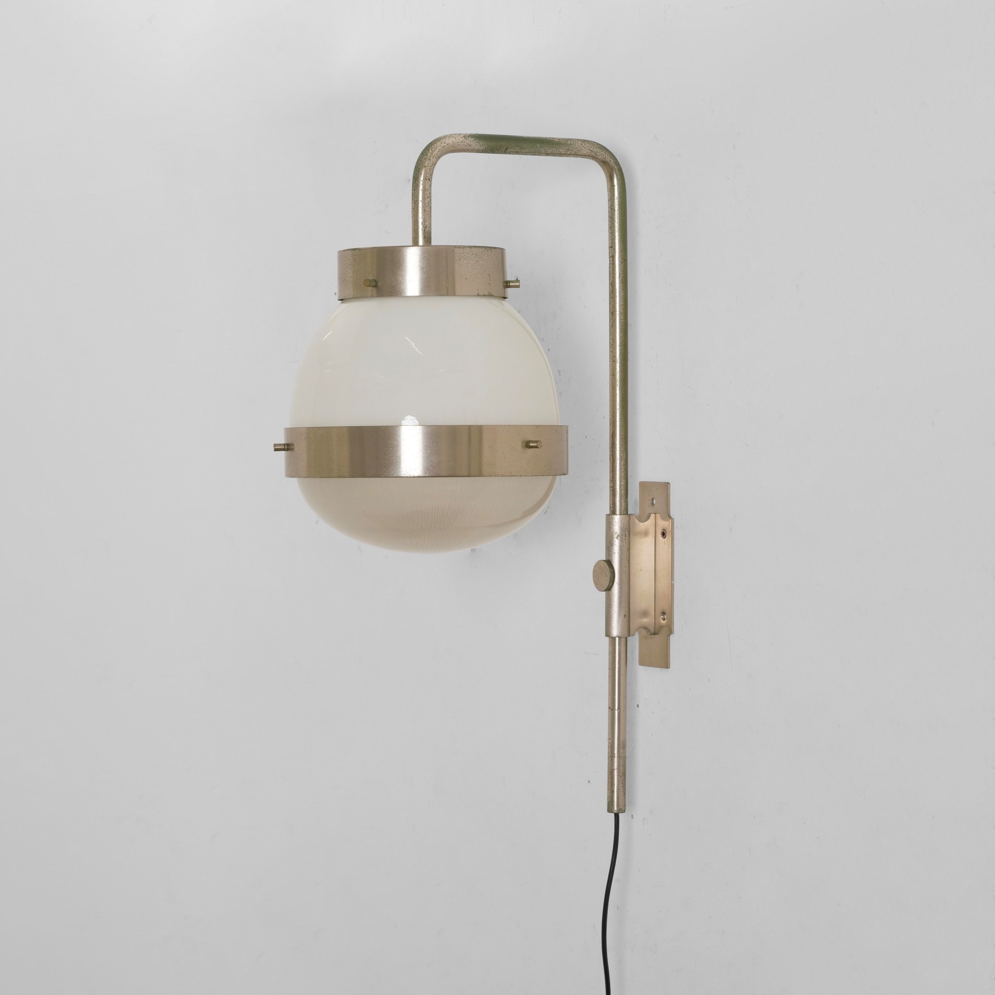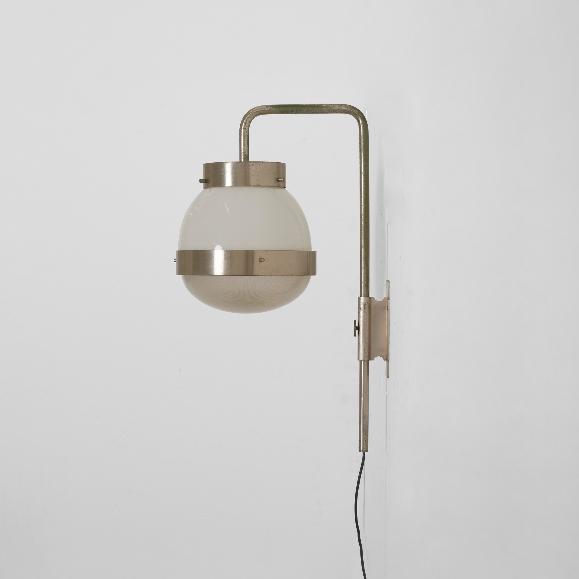 Struttura in ottone nichelato e diffusore in vetro opalino e vetro pressato.