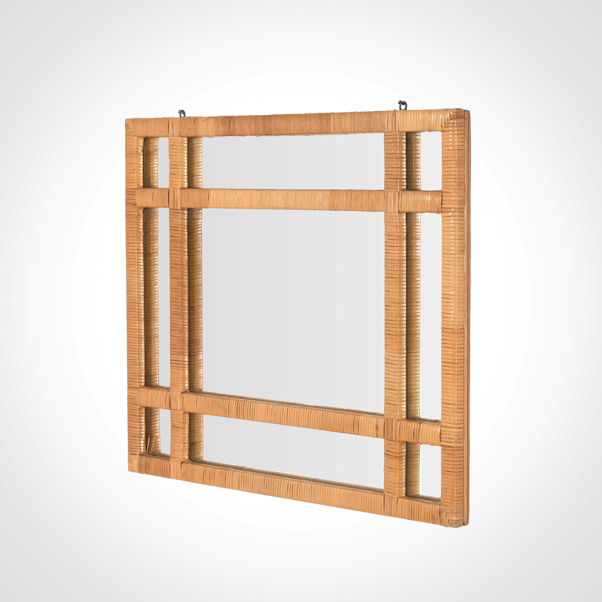 Cornice in vimini, cristallo specchiato.