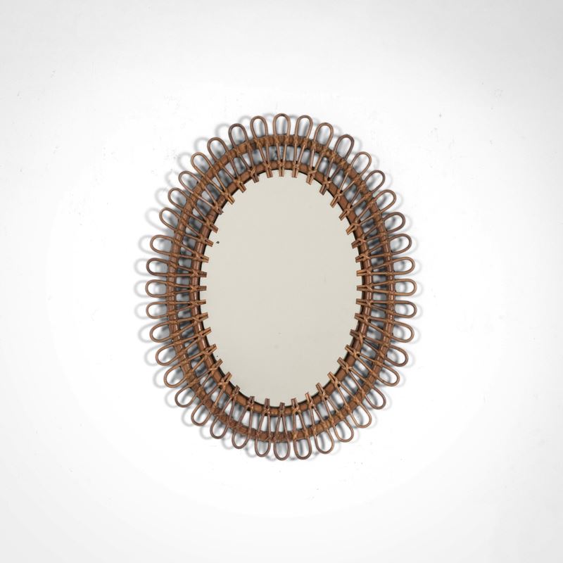 Cornice in bambù e canna d'India, cristallo specchiato.
