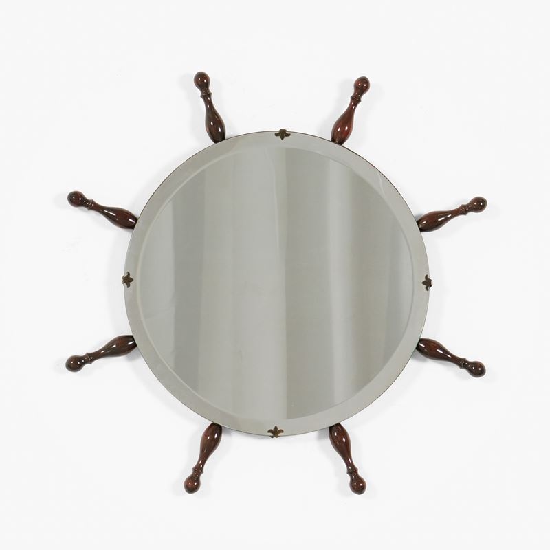 Struttura in legno e cristallo specchiato.