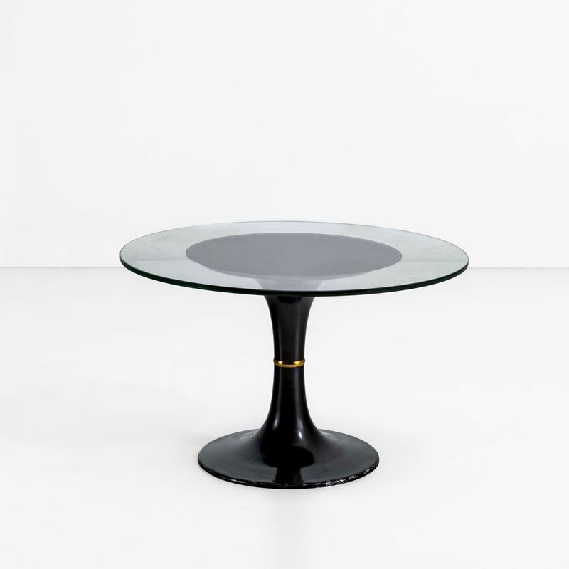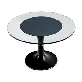Struttura in metallo laccato e piano in cristallo molato.