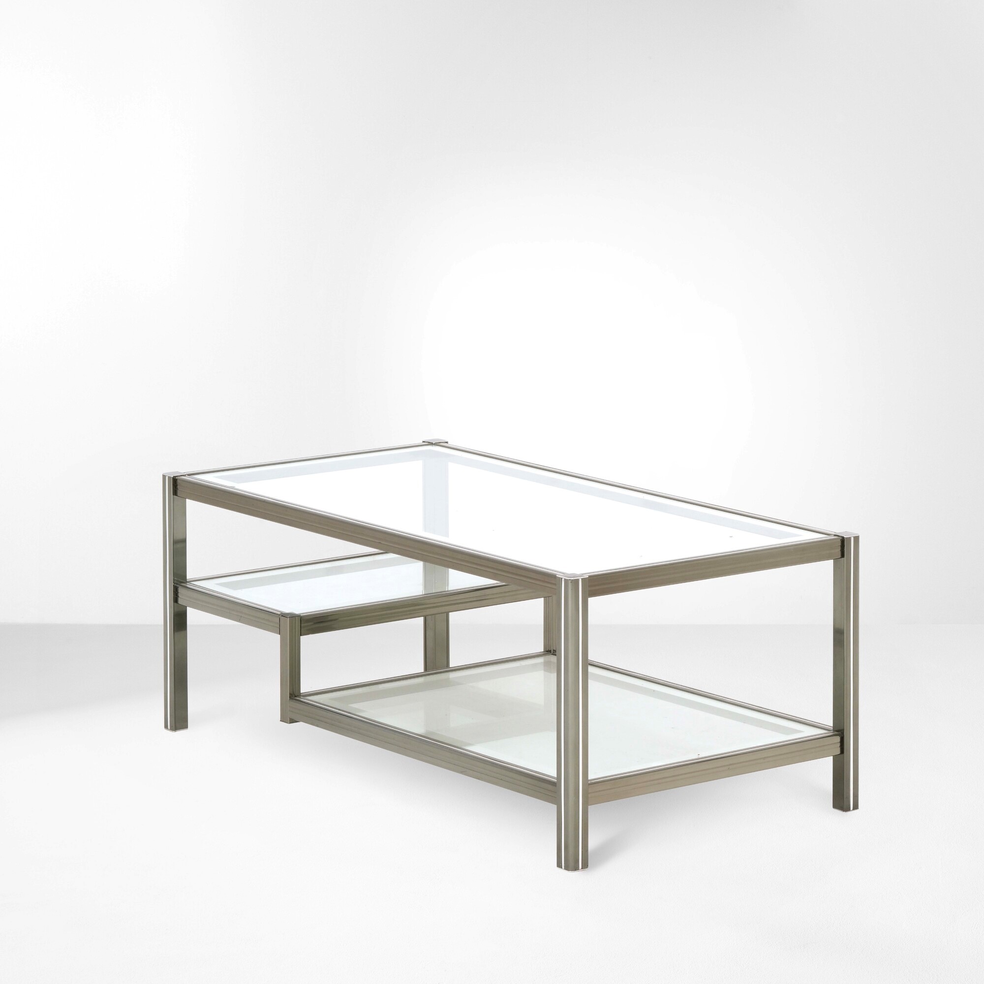 Struttura in metallo e piani in vetro e cristallo specchiato.