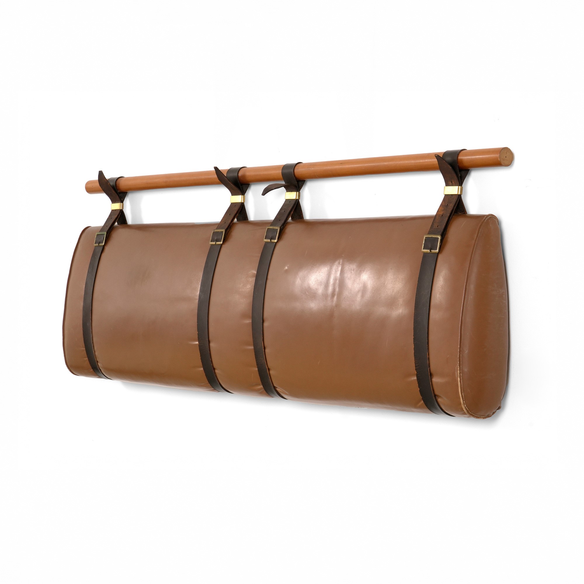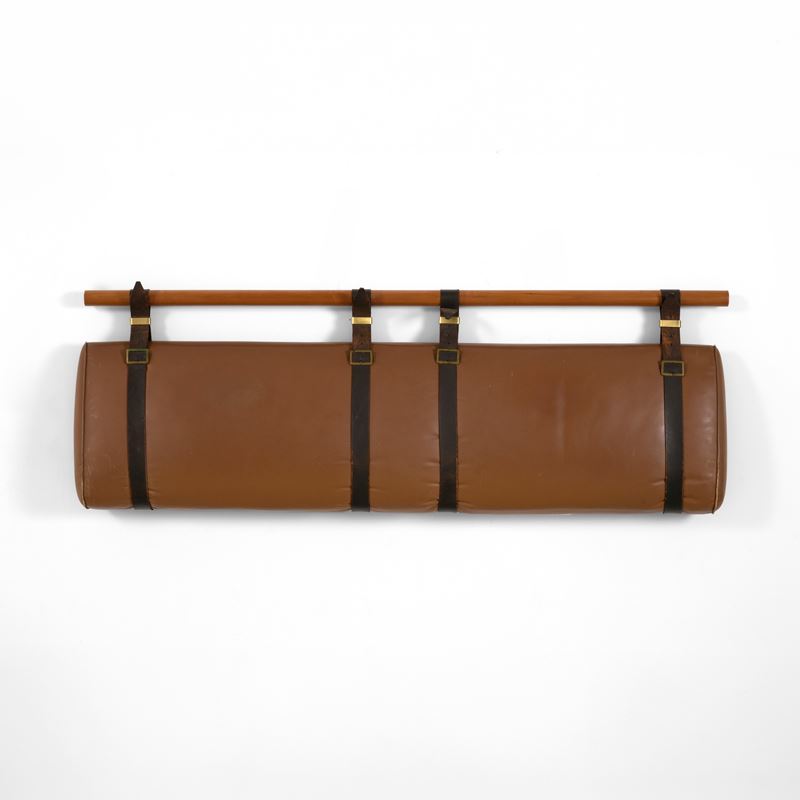 Struttura in legno, rivestimento in cuoio e dettagli in ottone.