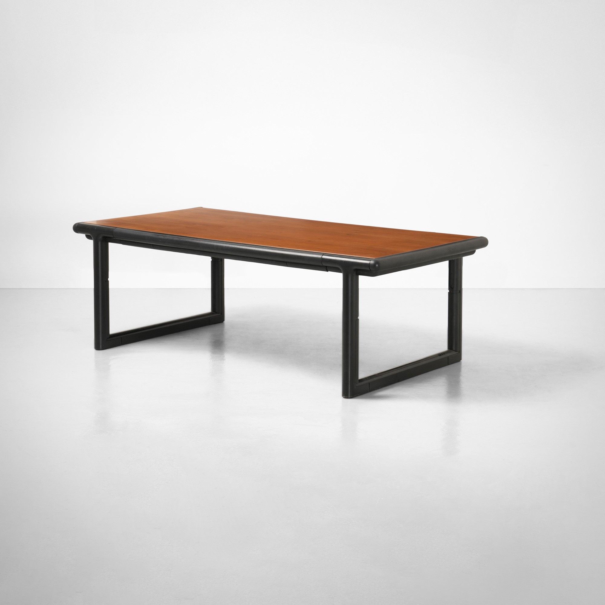 Struttura in materiale plastico, piano in legno e rivestimento in cuoio.