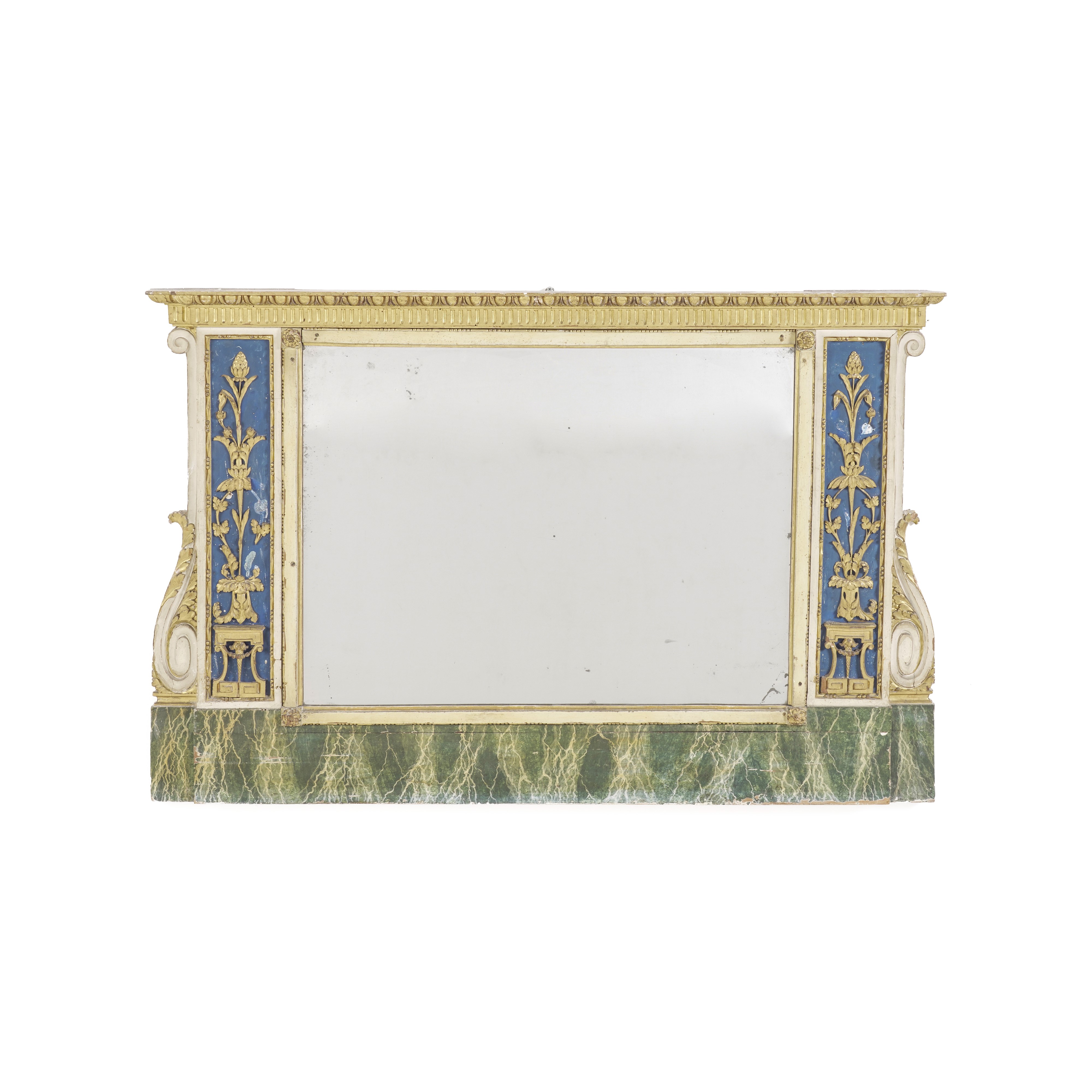 Caminiera in legno intagliato, dipinto e dorato, XIX secolo
