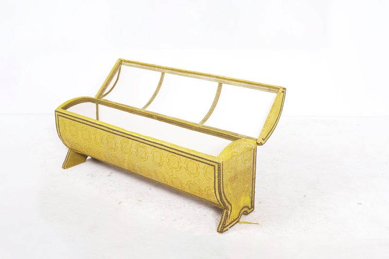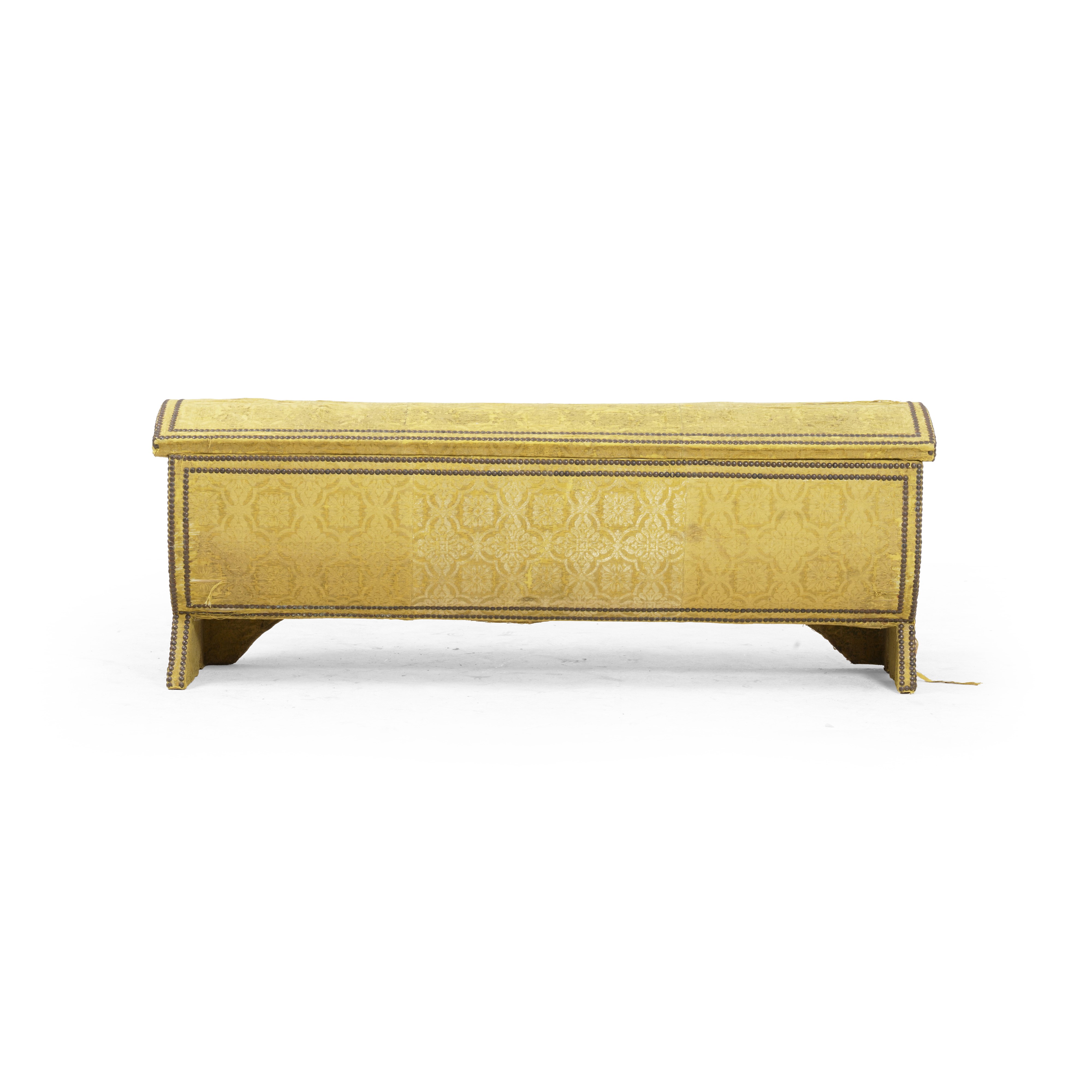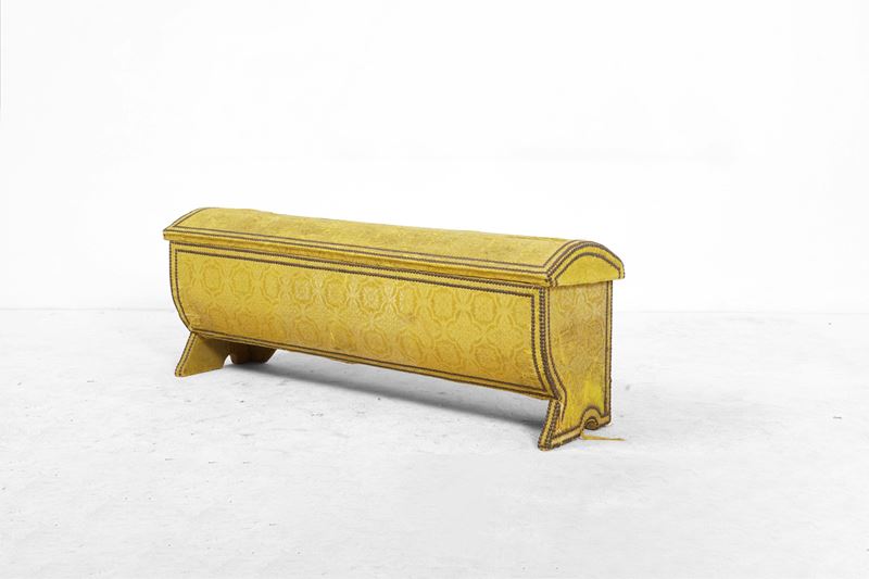 Cassone in legno ricoperto di filugello giallo