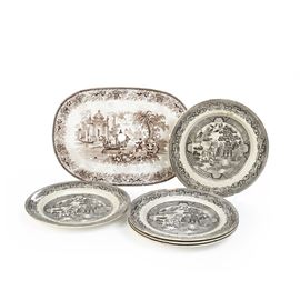 Cinque piatti. Milano, Società Ceramica Richard, ultimo quarto del XIX secolo.