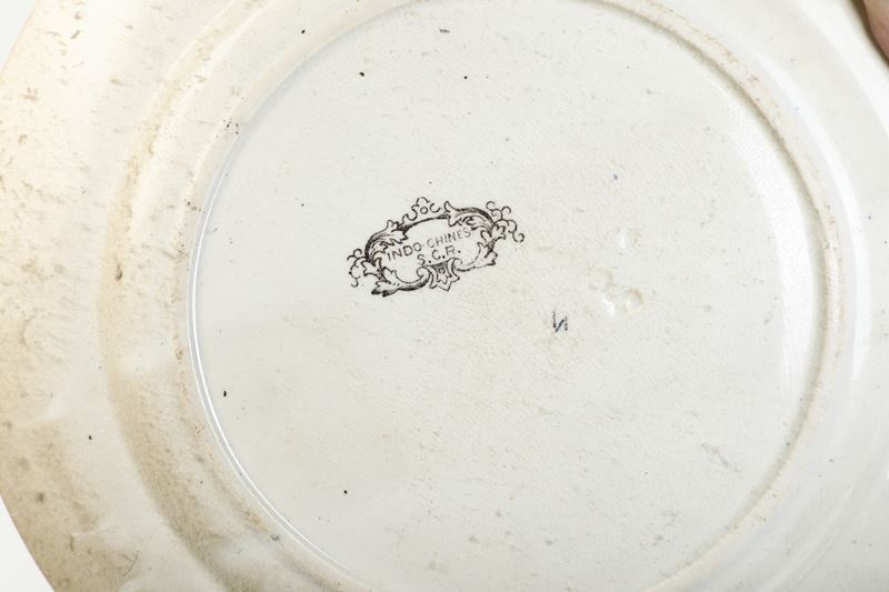 Terraglia. Marca: "S.C.R". Diametro cm 24. Conservazione: tre piatti con diverse sbeccature.