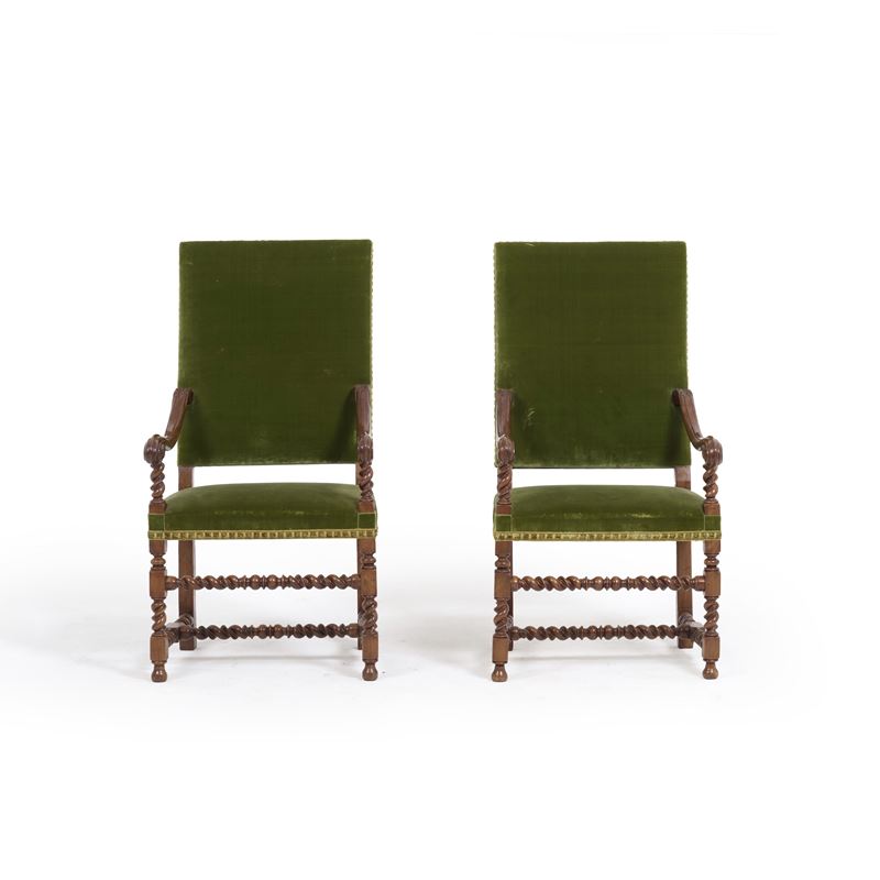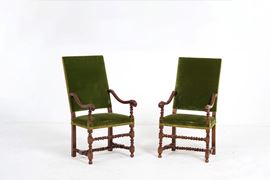 Coppia di seggioloni in legno intagliato. XVII-XVIII secolo