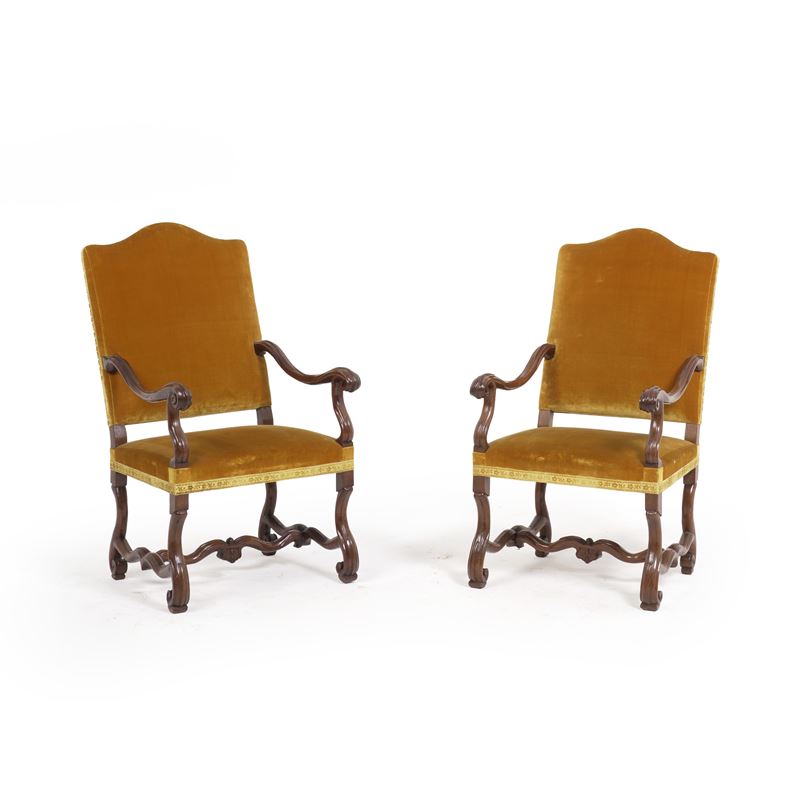 Imbottiti, schienale sagomato, gambe e braccioli a volute (restauri e sostituzioni)