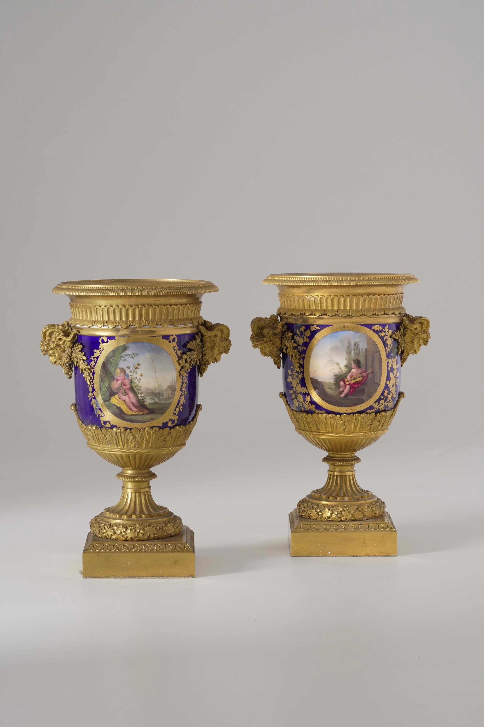 Coppia di vasi in porcellana e bronzo. Fine XIX-inizi XX secolo