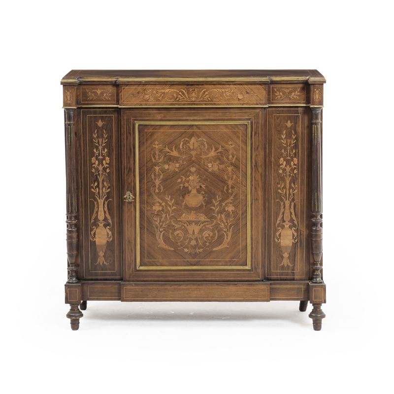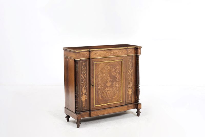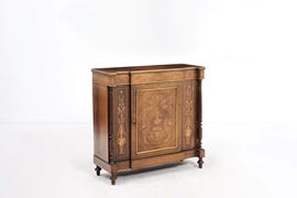 Credenzino da ingresso lastronato e intarsiato. Fine XIX-inizi XX secolo