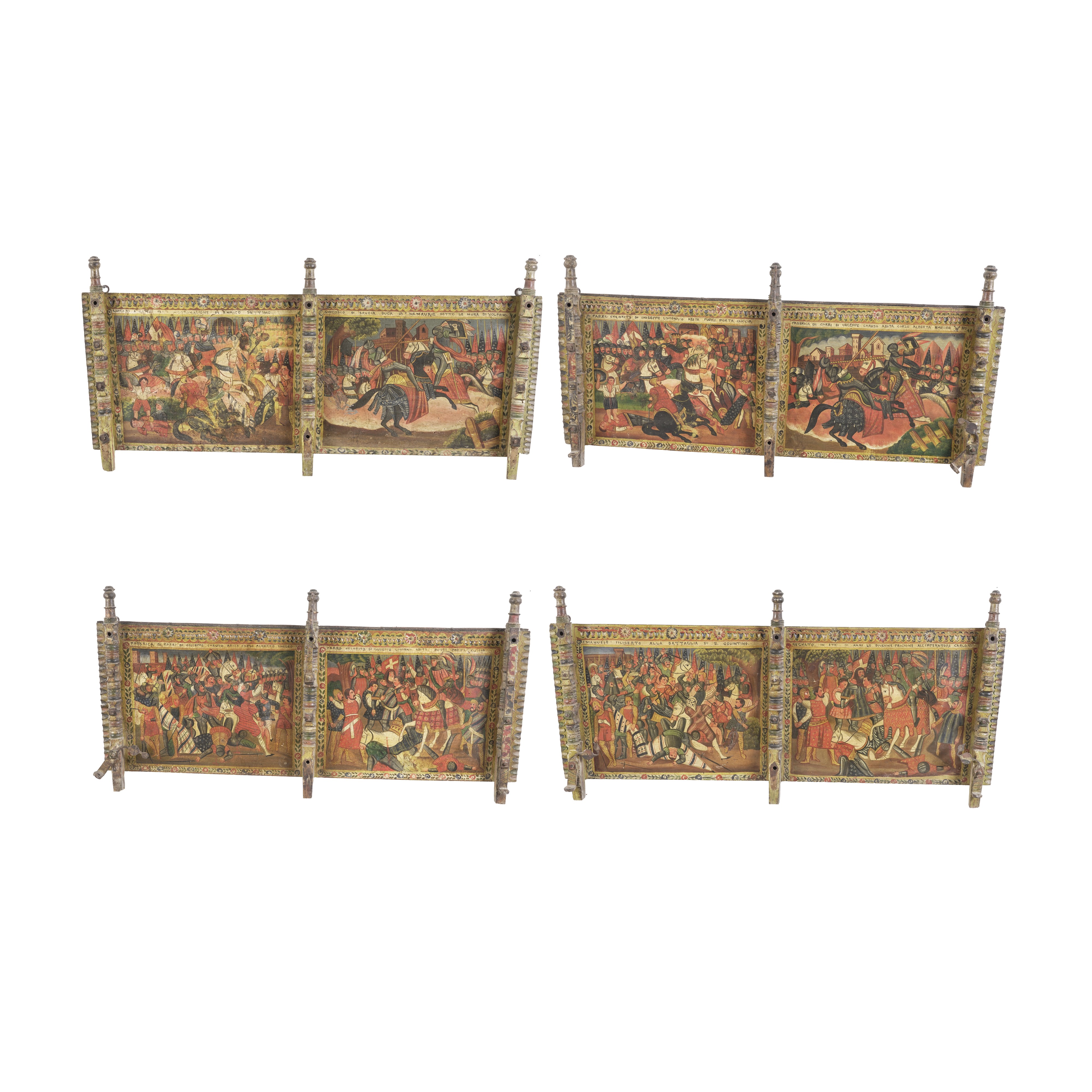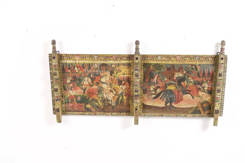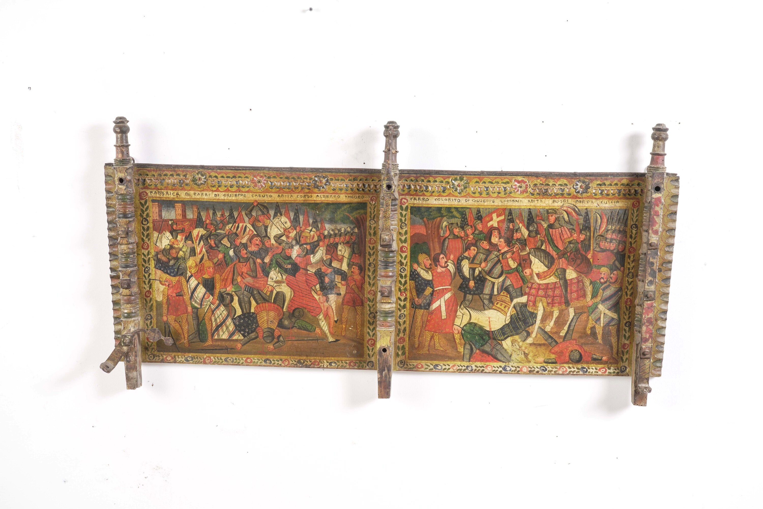 Elementi di carretto siciliano in legno dipinto