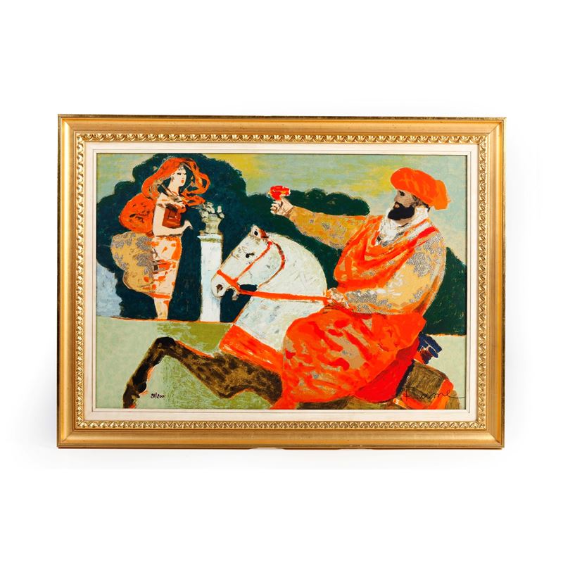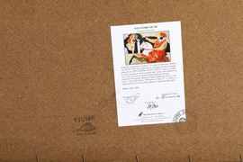 Serigrafia polimaterica su broccato in duecentosei esemplari (esemplare 28). Firma e tiratura sul fronte, autentica della Fondazione Fiume al retro. Entro cornice